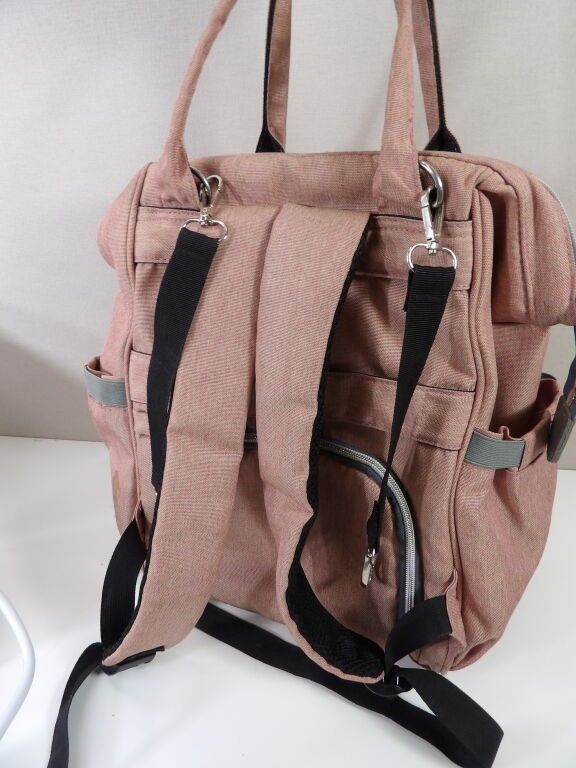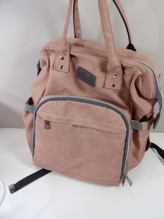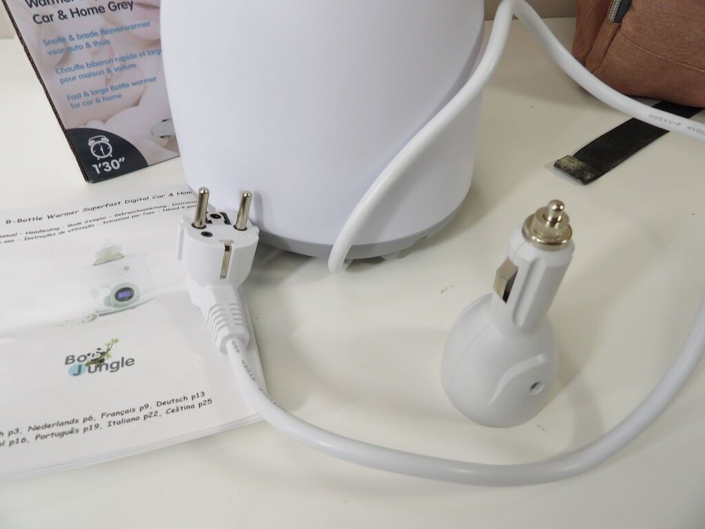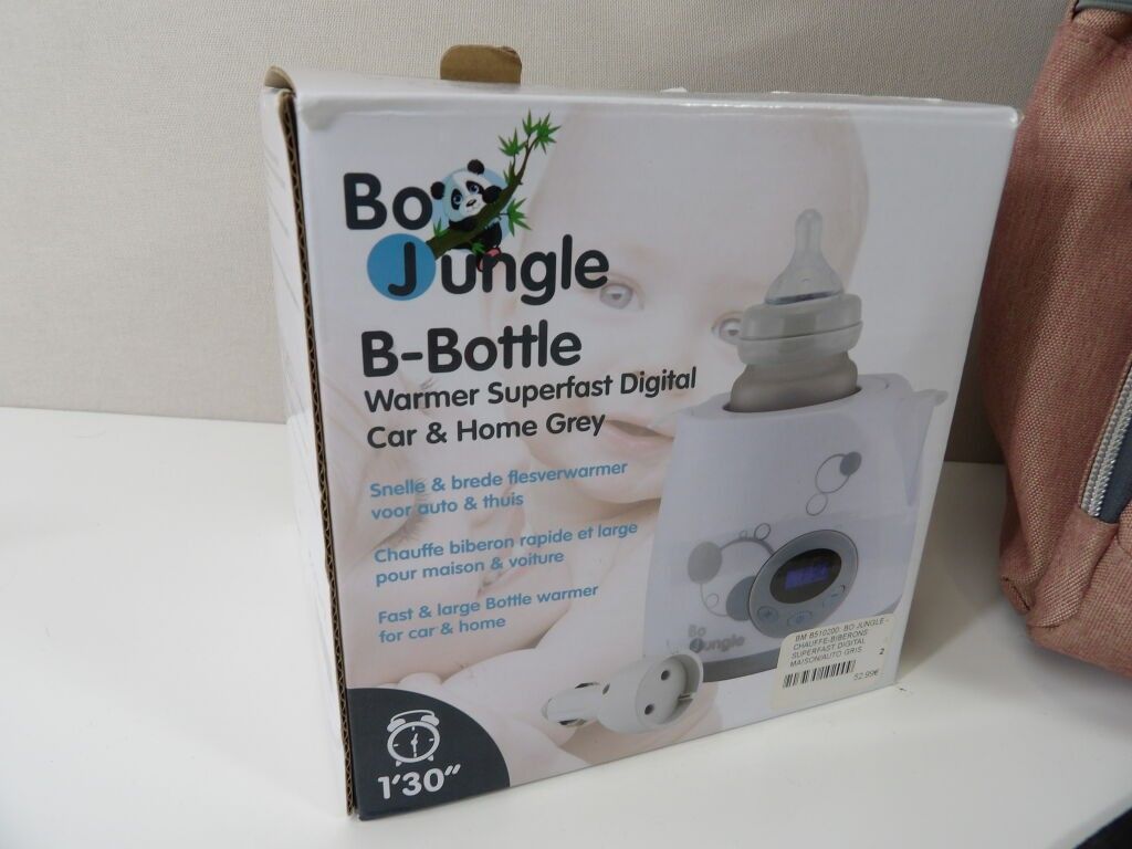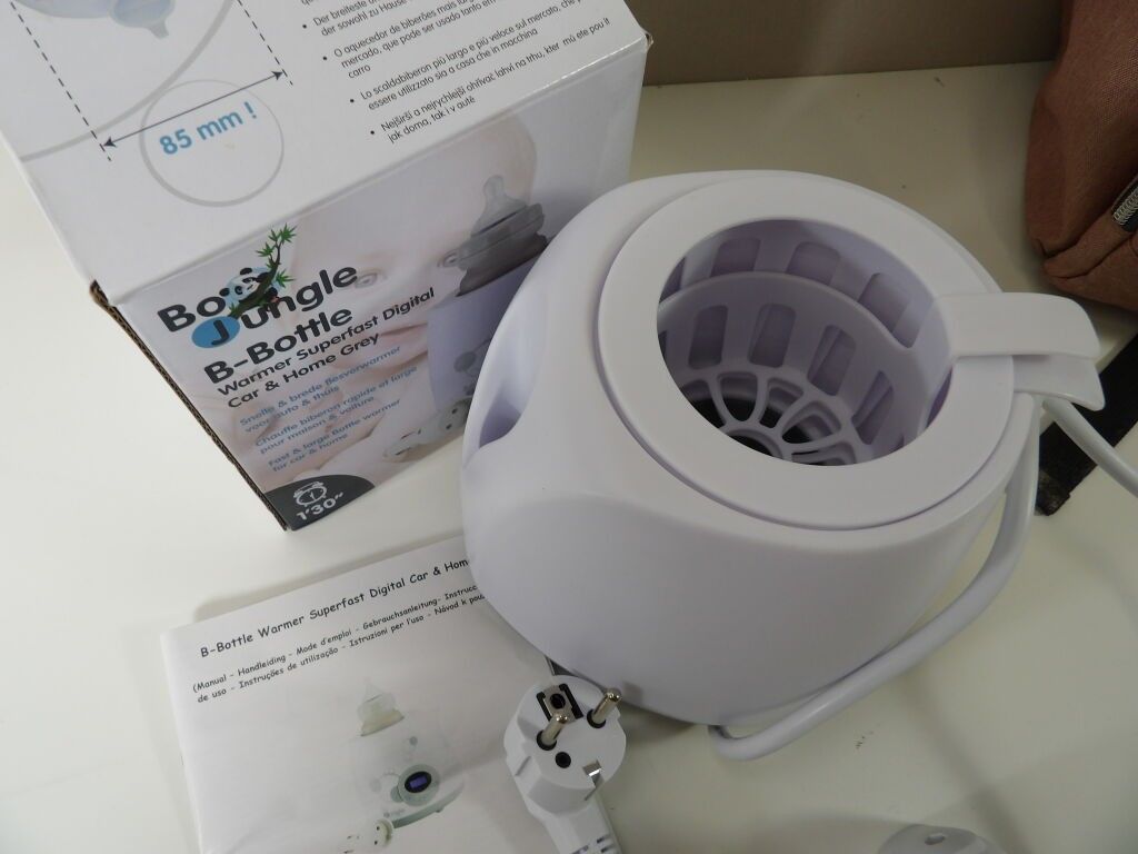 Set of x2 accessories for TRANSPORT: Nomadic bottle warmer (with wall socket and car cigar socket) - mint condition, unsealed box (new price €50!) and pink rucksack (satisfactory condition) for changing.