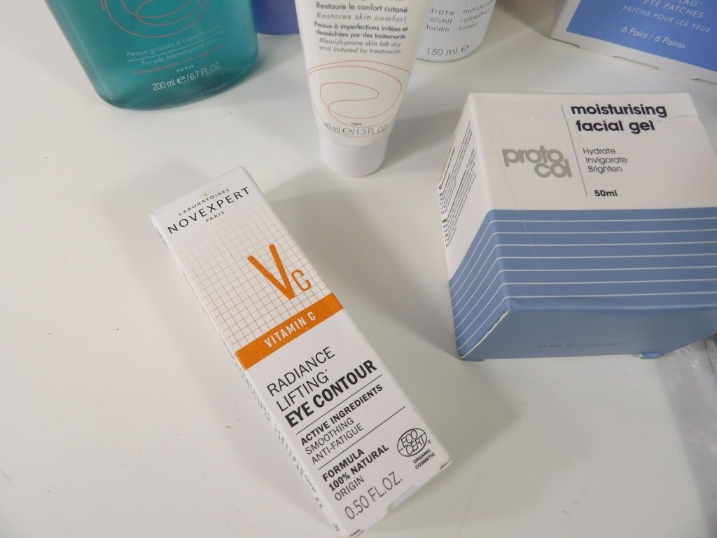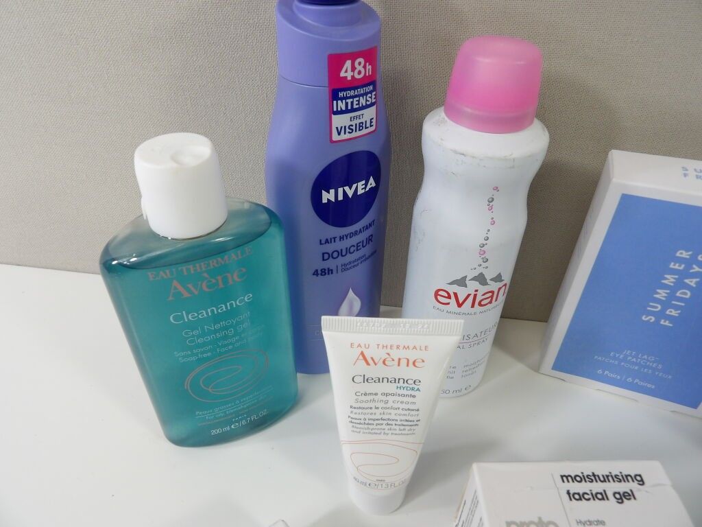 Pack of 12 skincare cosmetics (new and used): AVENE, L'Occitane en Provence, Novexpert, Brumisateur, Lait, Gommage SANOFLORE, Summer Fridays mask and eye patches ....