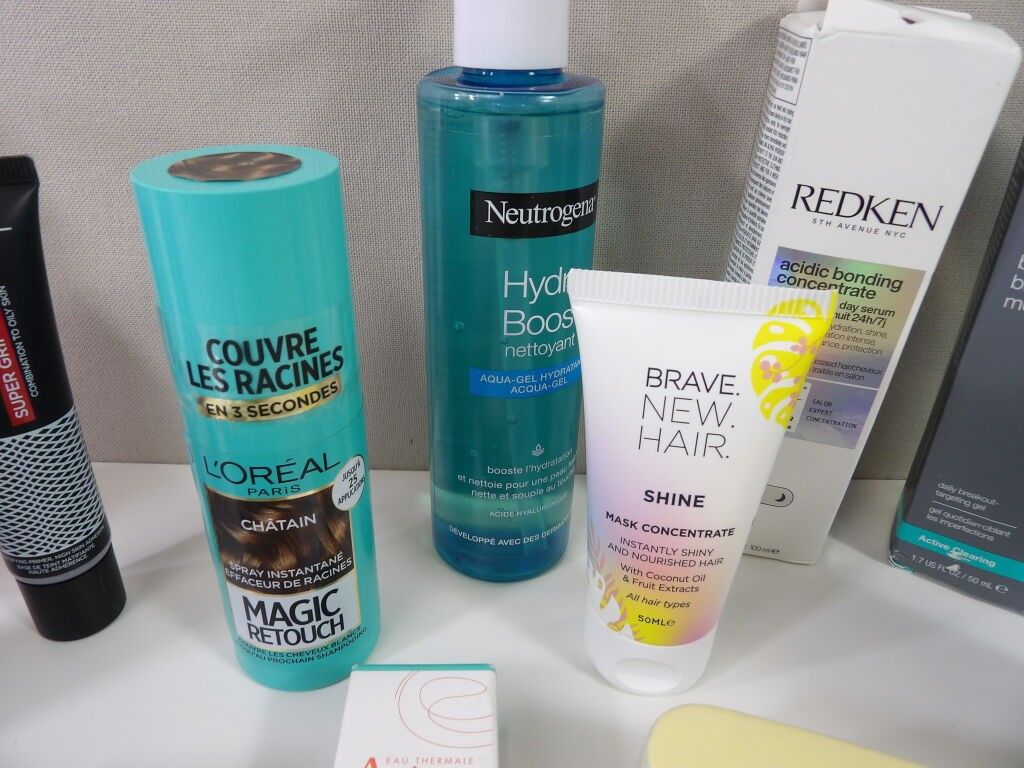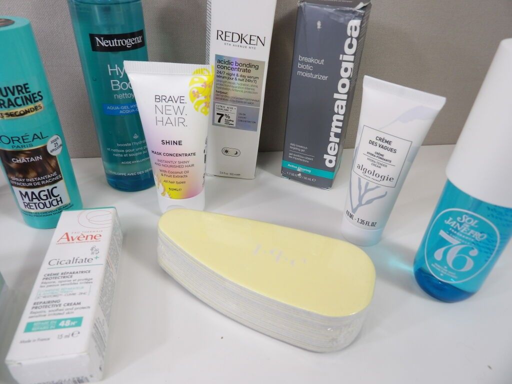 Lot of x14 COSMETICS (new and used) : Sol de Janeiro, L'Oréal, Neutrogena cleanser, KLORANE shampoo, Dermalogica daily gel, ALOE dark circle patch, AVENE, REDKEN ...