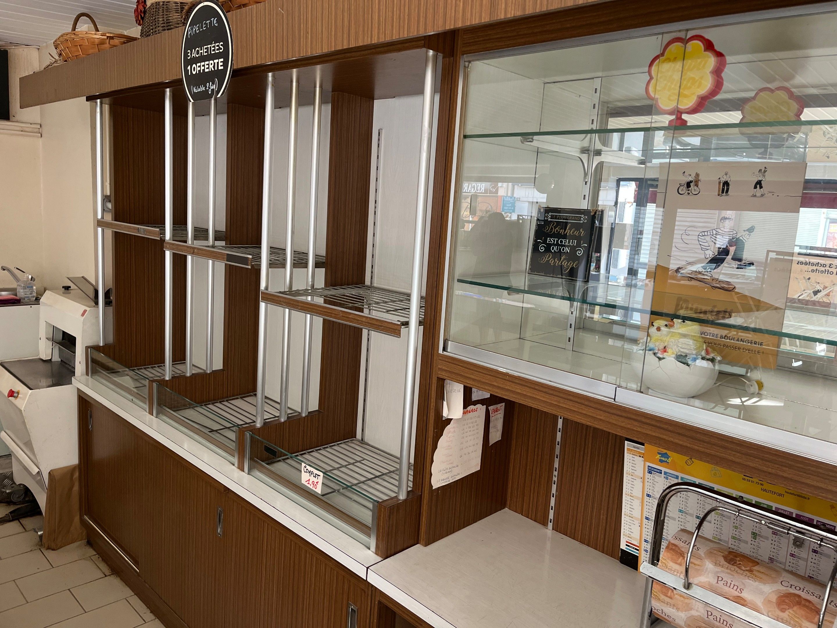 1 melamine cabinet with 3 bread shelves, 1 sliding display c…