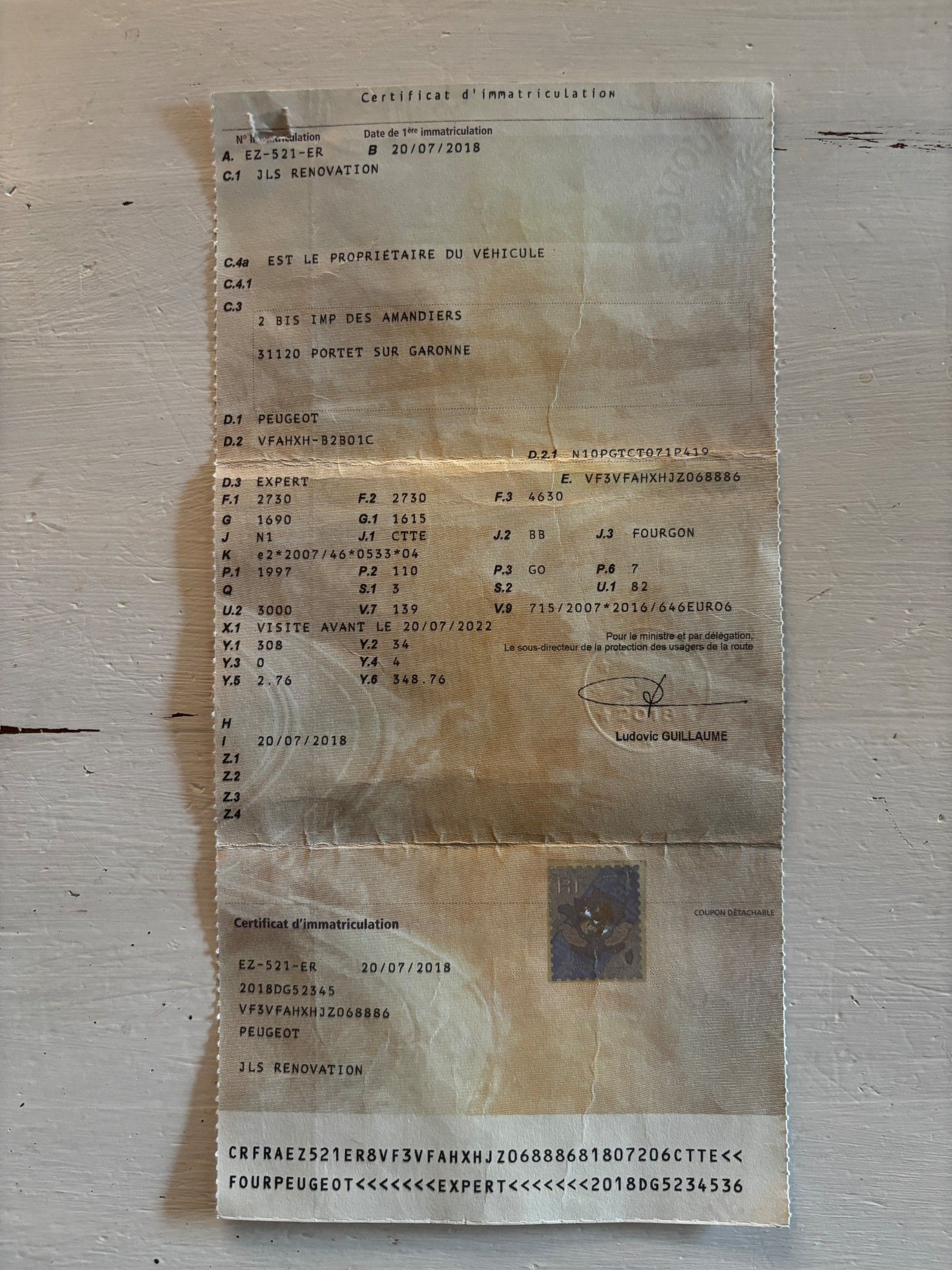 Chassis number (VIN) : VF3VFAHXHJZ068886
