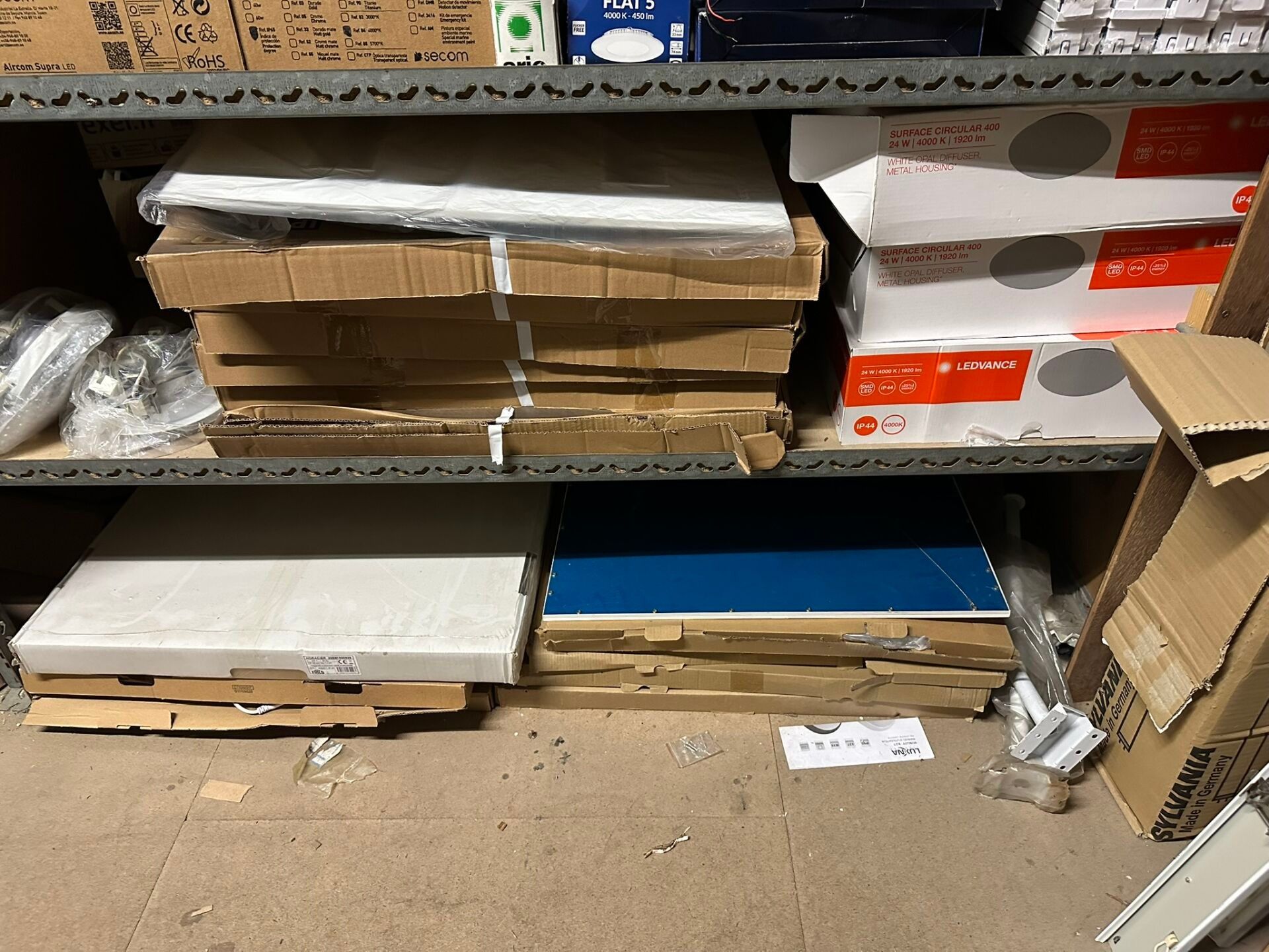 Stock of light bulbs, neon lights, ceiling lights, wall lights, ASLED luminaires and other items