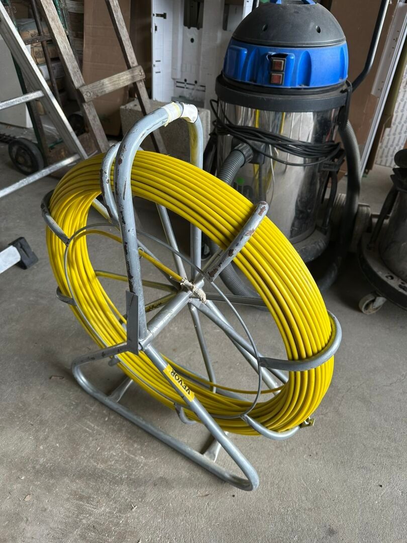 A fibreglass pulling needle on a VEVOR manual unwinder
