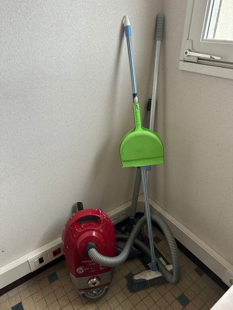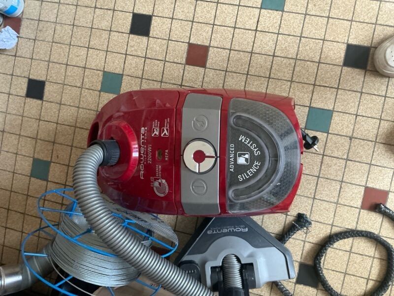 A ROWENTA SILENCE FORCE hoover. Two brooms attached