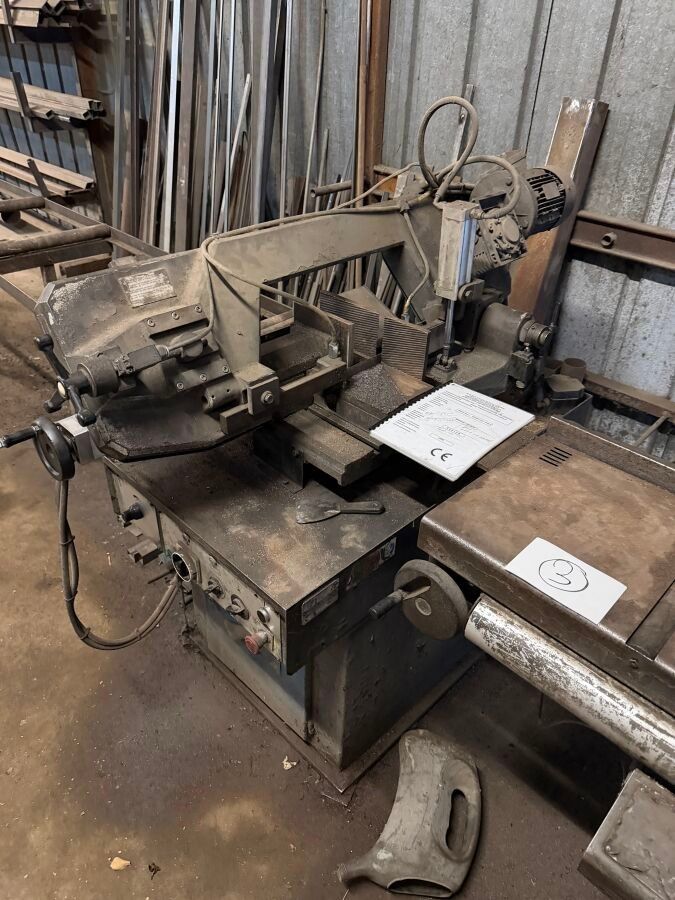 1 tilting band saw with infeed and outfeed benches, 2000s