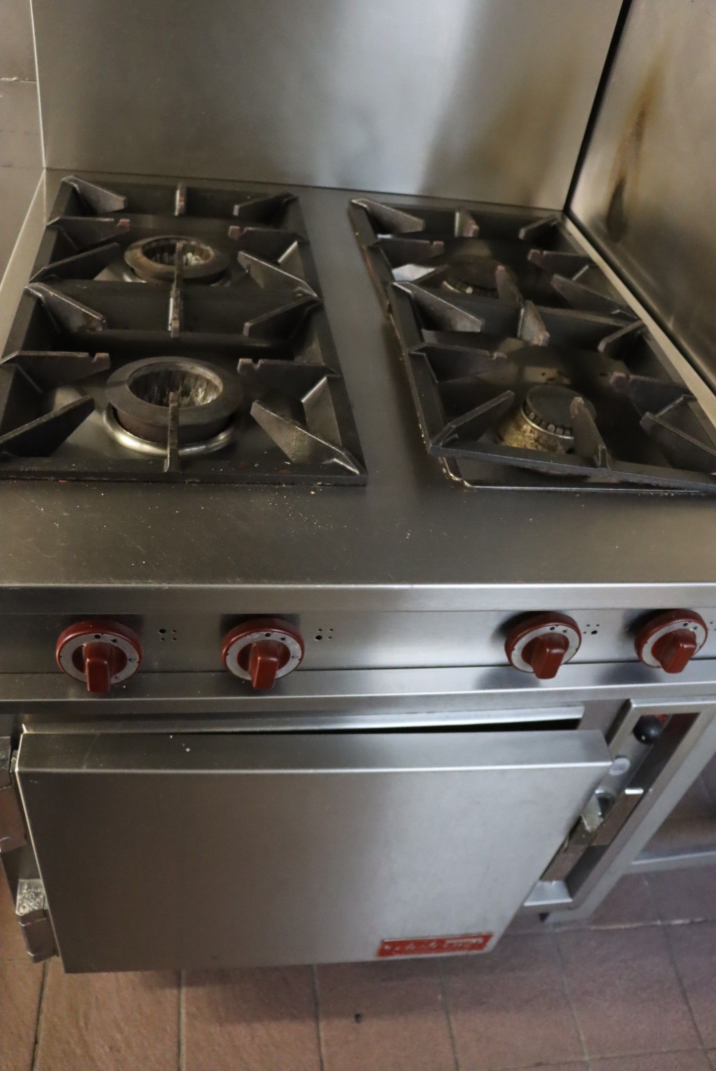 A four-burner piano and Delrue oven. Average condition