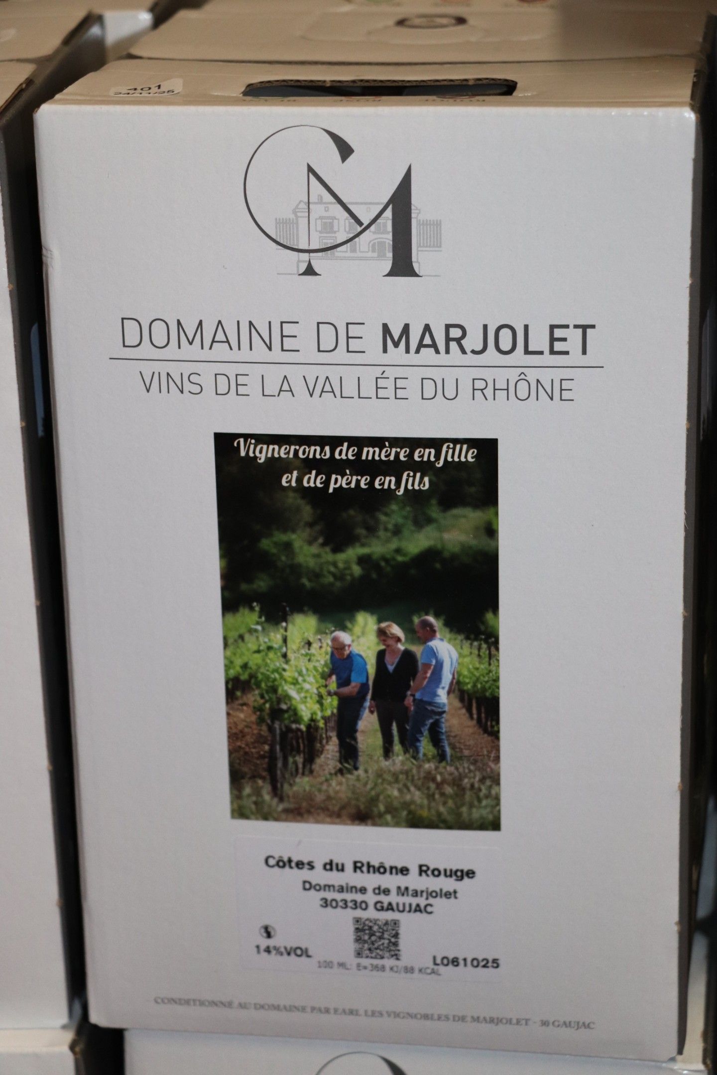 6 10-litre cube of red Côte du Rhône domaine de Marjolet