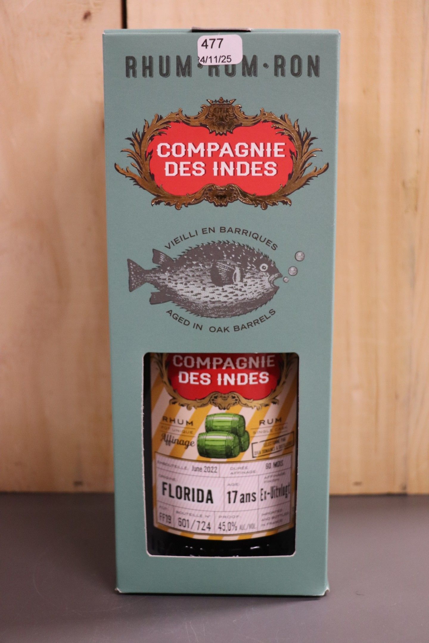 1 bt FLORIDA rum 17 years COMPAGNIE DES INDES