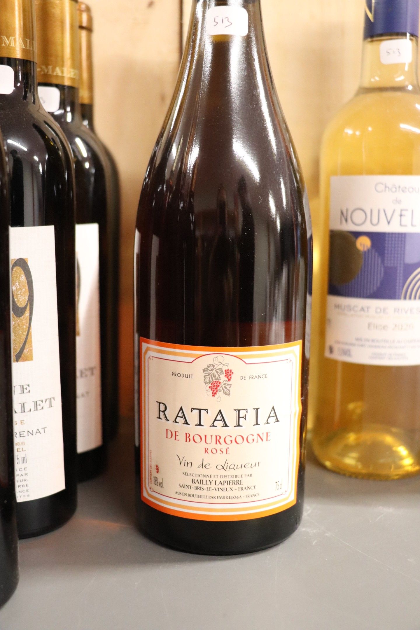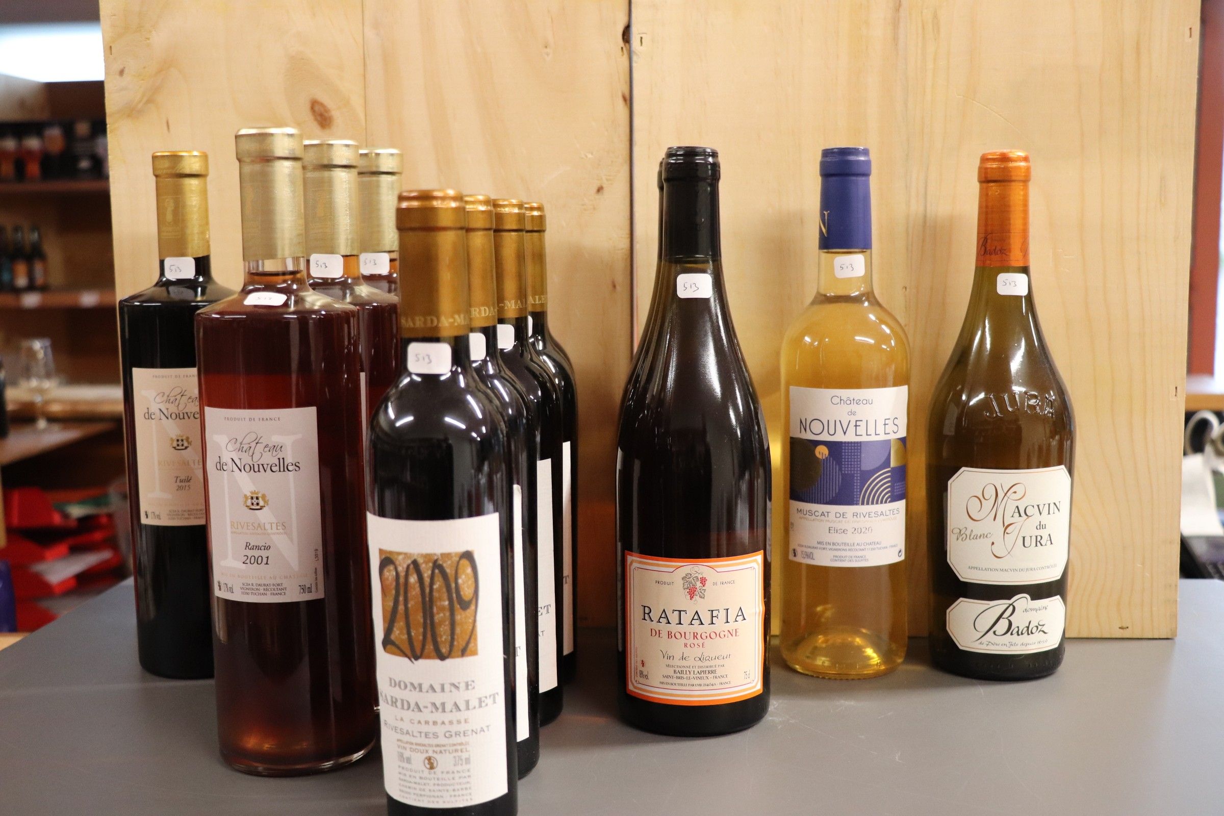 Batch of 13 bt including 3 RIVESALTES RANCIO 2001, 1 RIVESALTES TUILÉ 2015, 5 RIVESALTES GRENAT 2009 (37.5 cl), 1 muscat de RIVESALTES 2020, 2 Ratafias de Bourgogne rosé and 1 Macvin de Jura domaine BADOZ