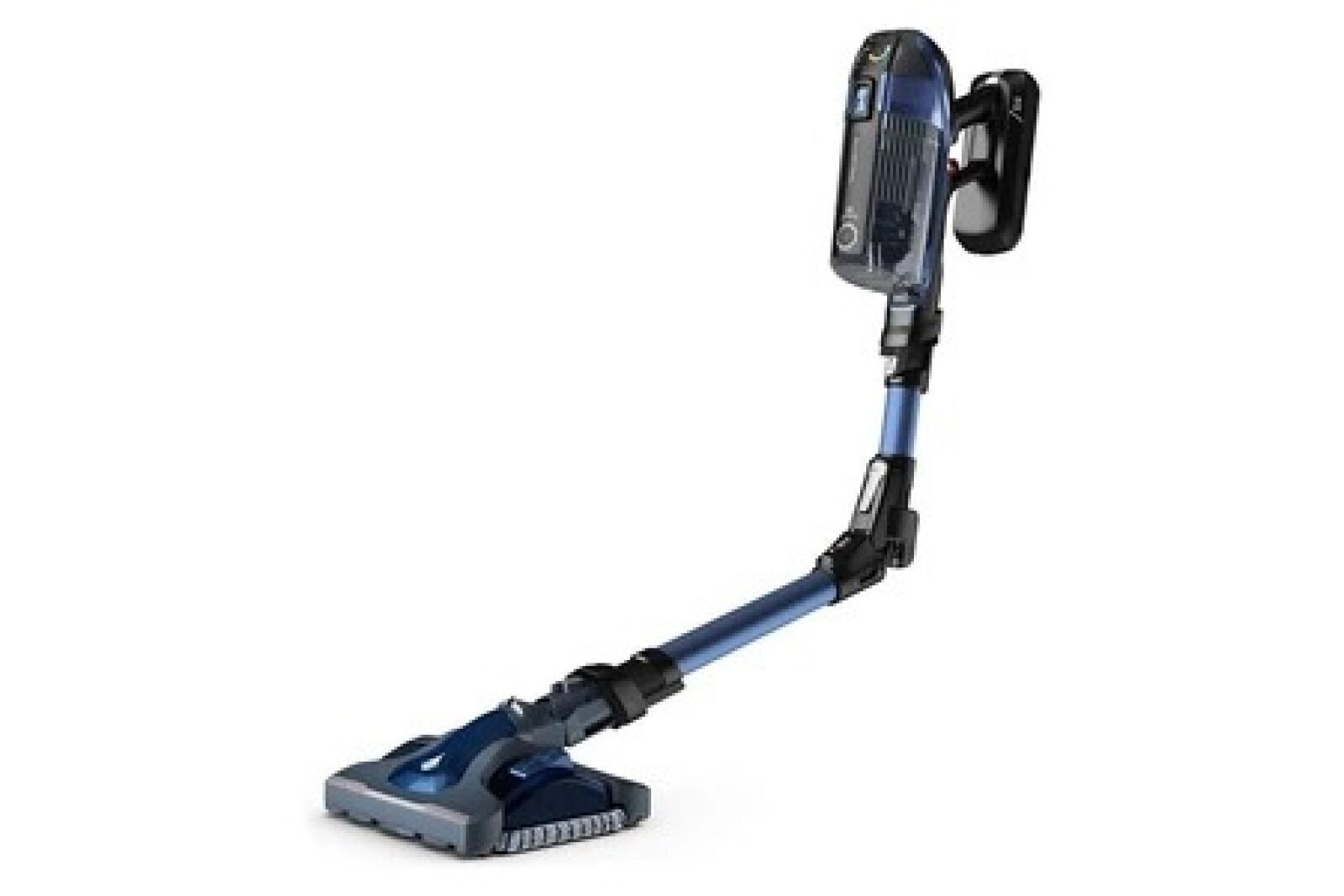 9245-145 / Rechargeable upright hoover - ROWENTA - RH99C0WO - Blue/Black - Suction power up to 200 Air Watts, 32.4 V lithium-ion battery, 70-minute runtime, 0.9 L dust bowl, cyclonic technology, Smart Control control screen, Flex tube for cleaning under furniture, LED Vision brush, mini powerhead, crevice tool, sofa brush, crevice tool, wall-mounted charging station - Dimensions : 25 cm (W) x 28 cm (D) x 114 cm (H) - Weight: 3.2 kg /// IN USE TRACES