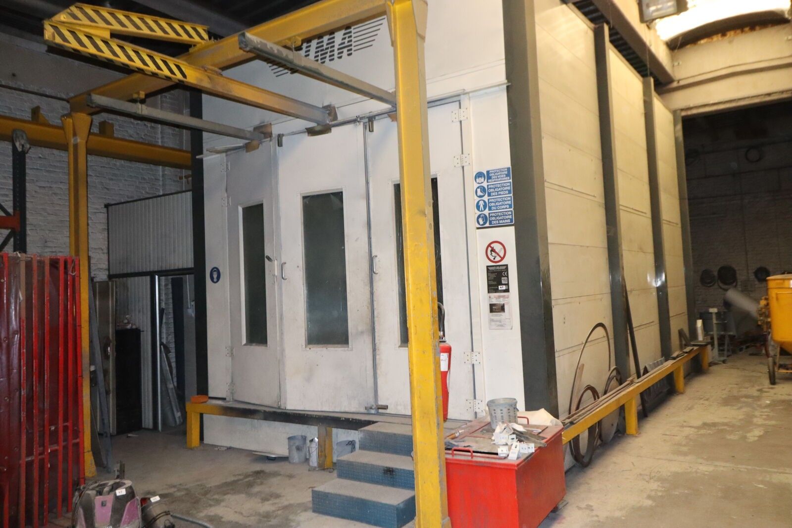 A SIMA paint spray booth (length: 7.20m width: 4.50m height: approx. 4.50m) the spray booth stops under the roof waterproofing.