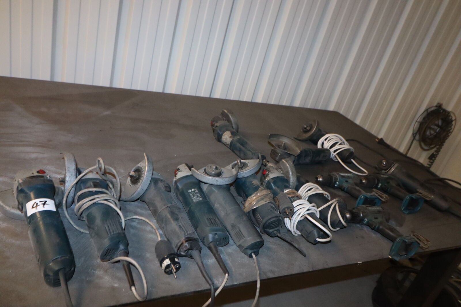 Eight small BOSCH grinders, two MAKITA cordless screwdrivers…