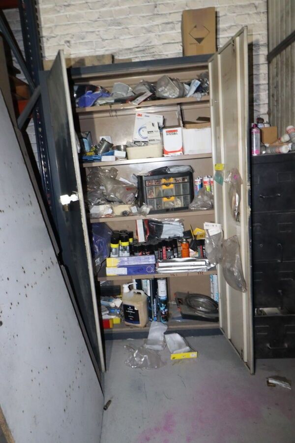 Stock of around 30 welding torches, ground wires, 7 helmets, an ABICOR BINZEL rod cooler and the contents of the accessories cupboard.