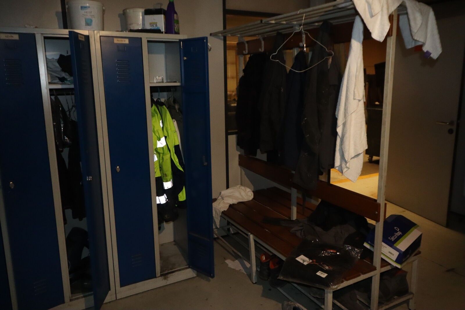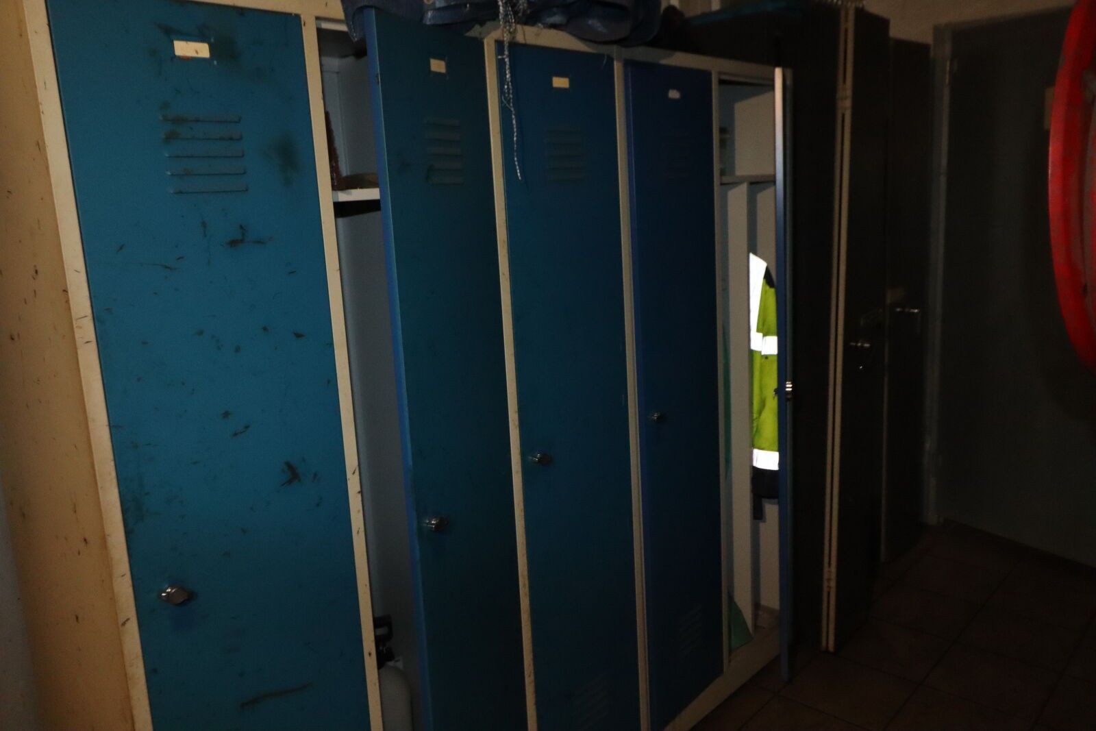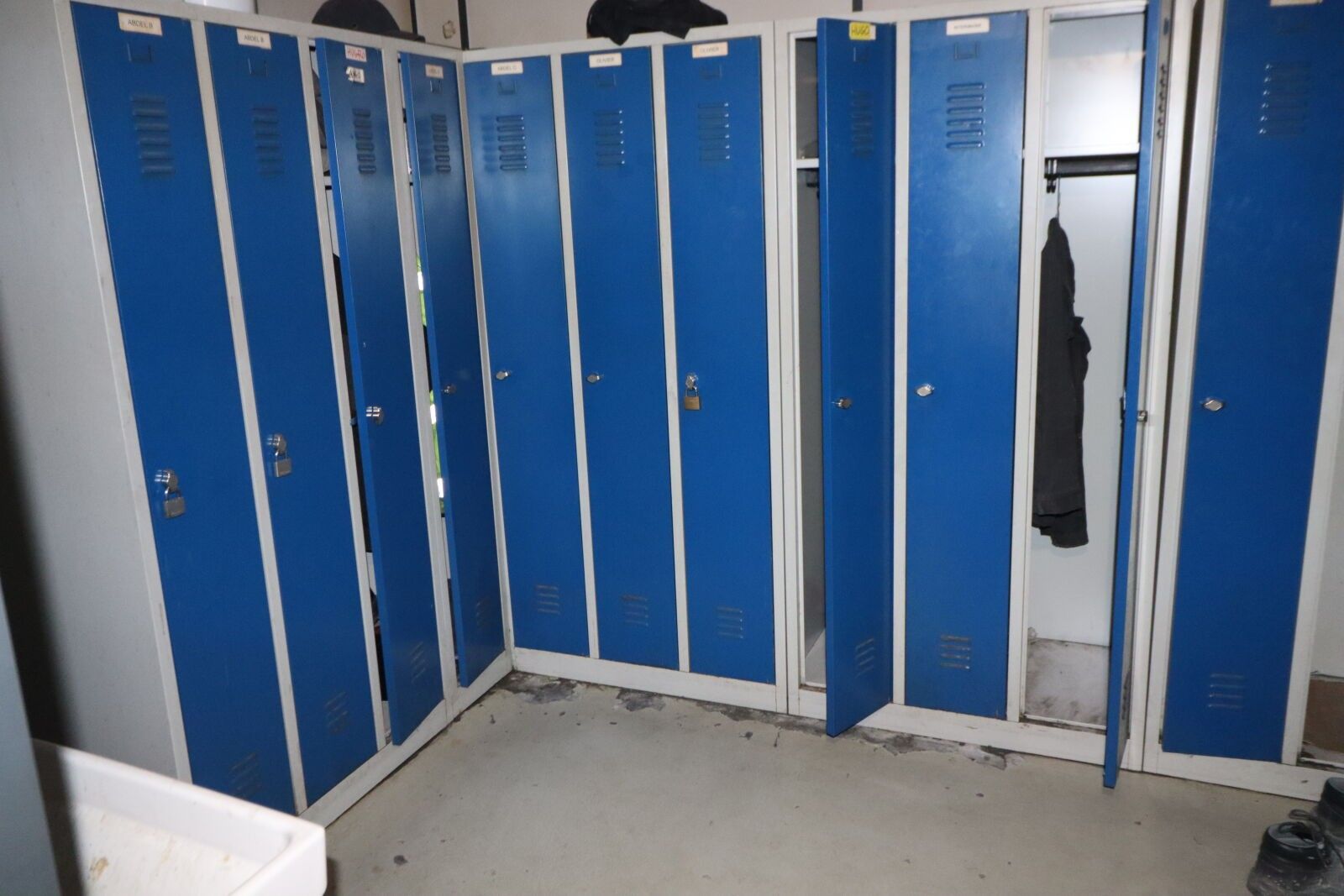 Nineteen changing rooms, a metal cupboard with two doors and…