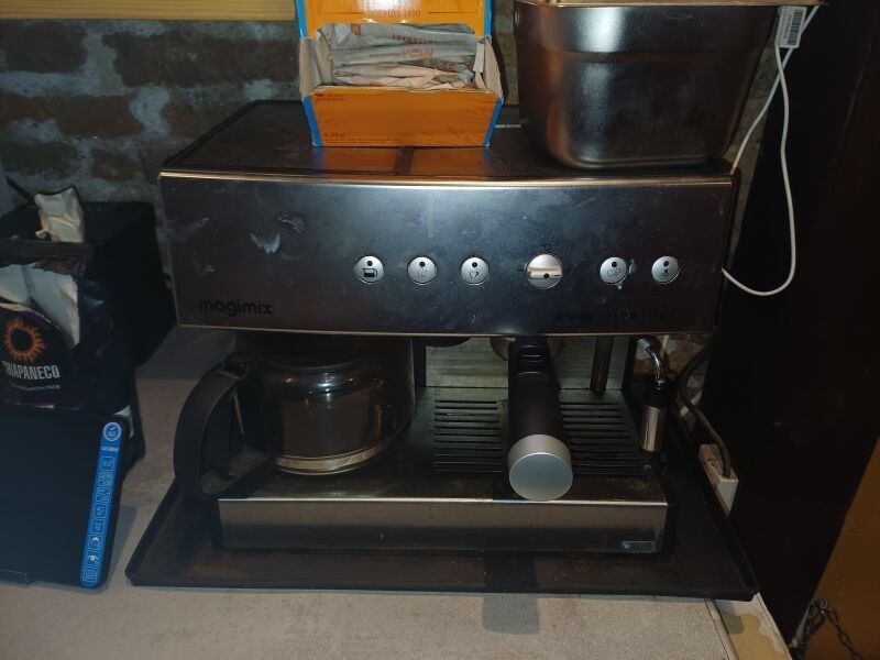 A MAGIMIX single-spout coffee maker and foam creamer, an unb…