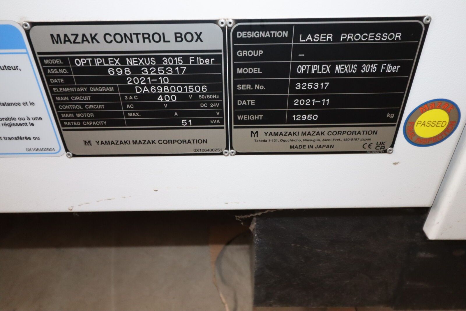 MAZAK OPTIPLEX NEXUS 3015 FIBER laser cutting machine (for 6 KW laser)