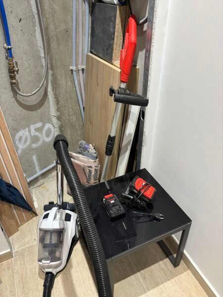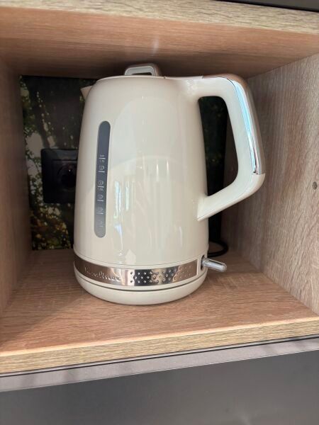 1 Galan microwave oven, 1 Klarstern mini fridge, 1 canister hoover, 1 low pine shelf