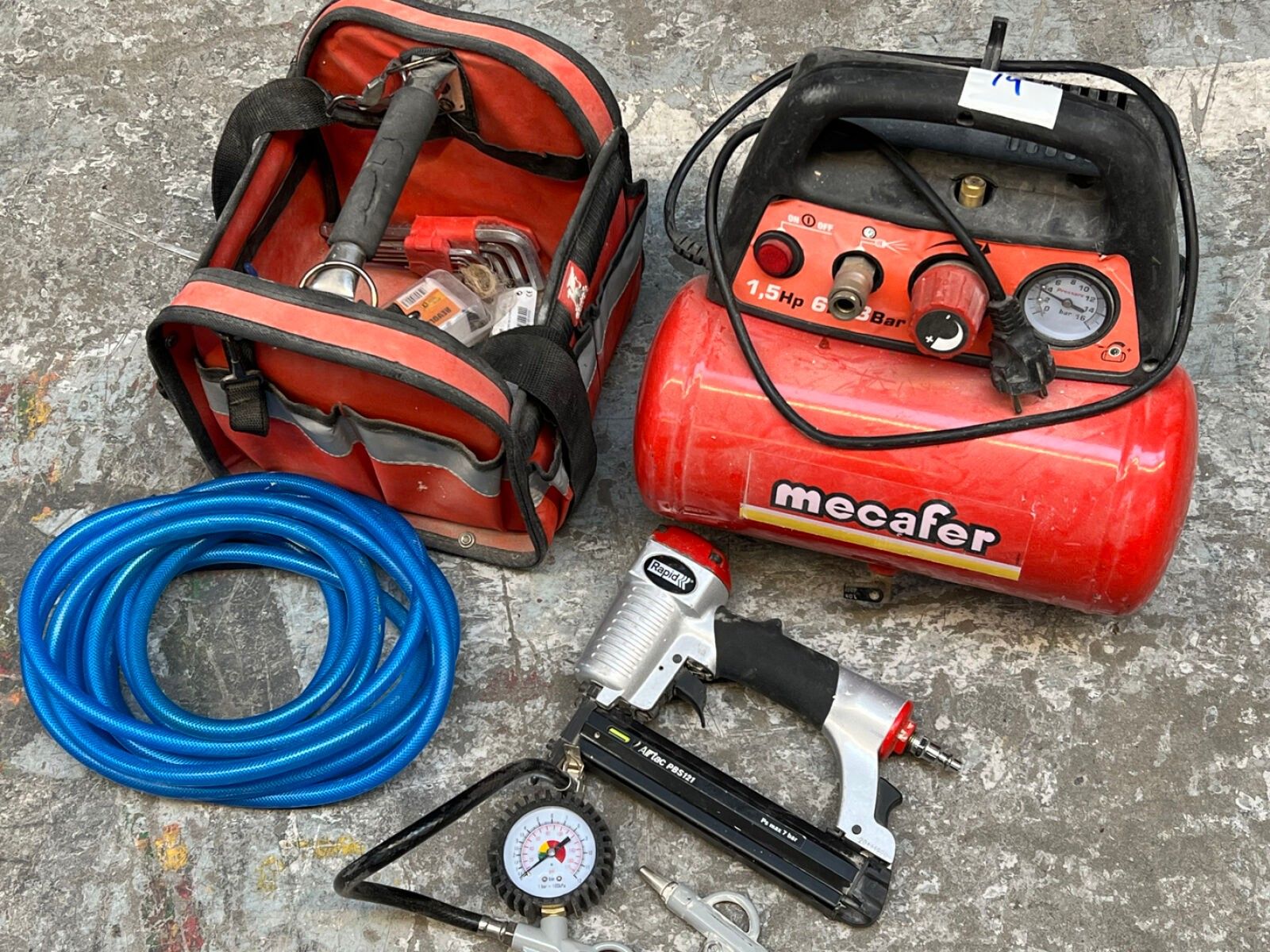 Portable 6-litre MECAFER 8-bar compressor + accessories sell…