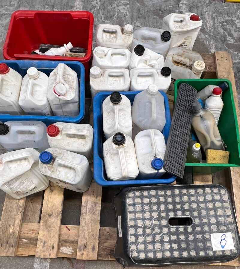 2 pallets of cleaning products, buckets, squeegees, 3 extens…