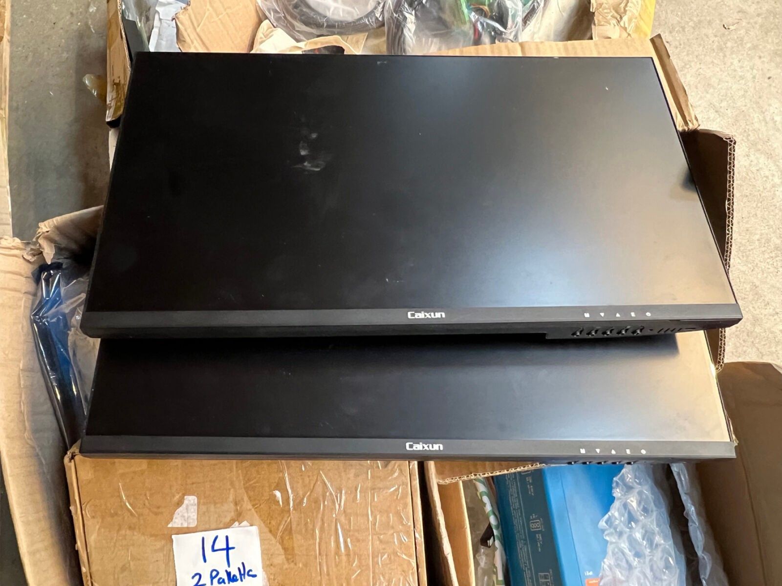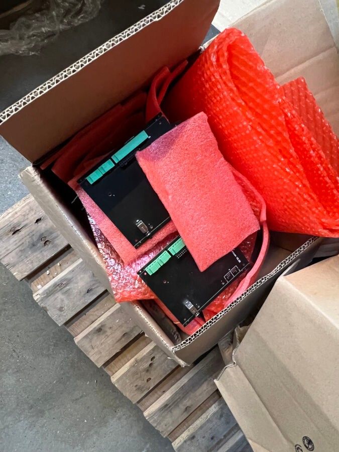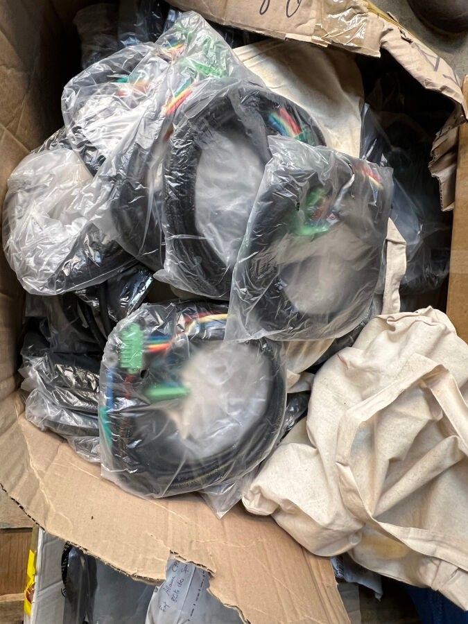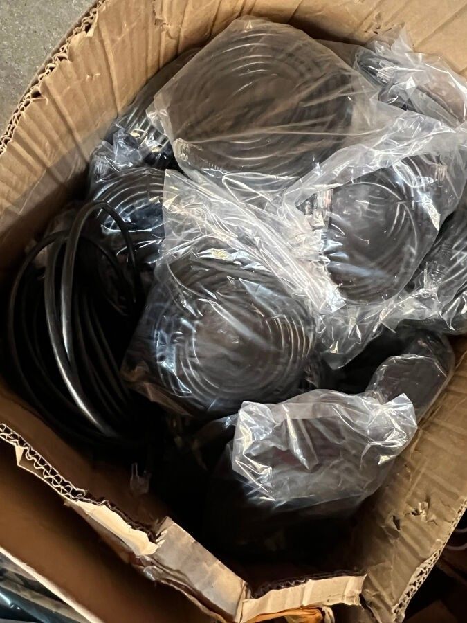 2 pallets of stock of electronic components, network cables, pre-load resistors, 2 computer screens selling price 14.28% sold as is following judicial liquidation