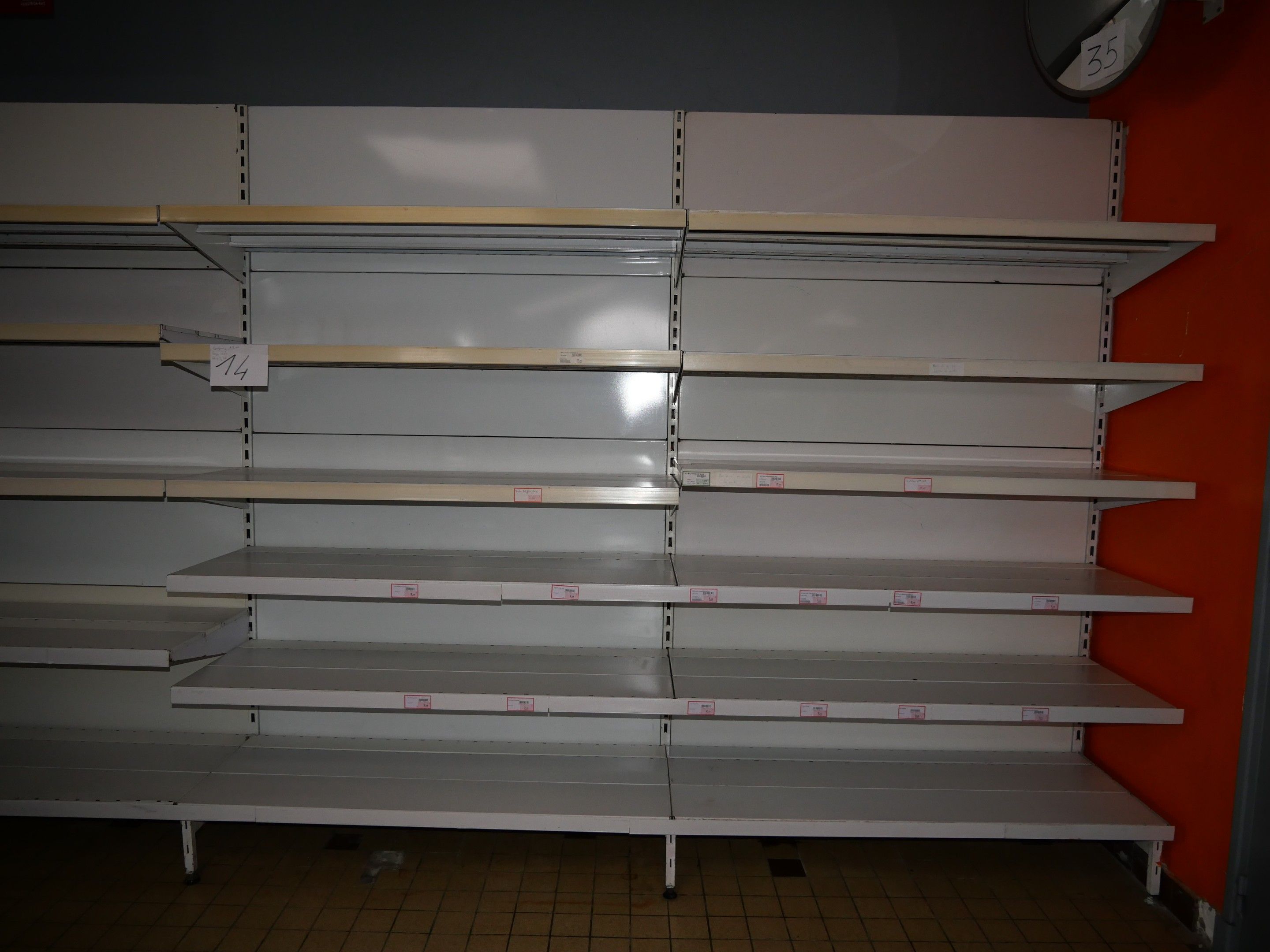 Eighteen white metal gondola panels, approx. 13 metres, as is, purchaser to provide removal equipment.