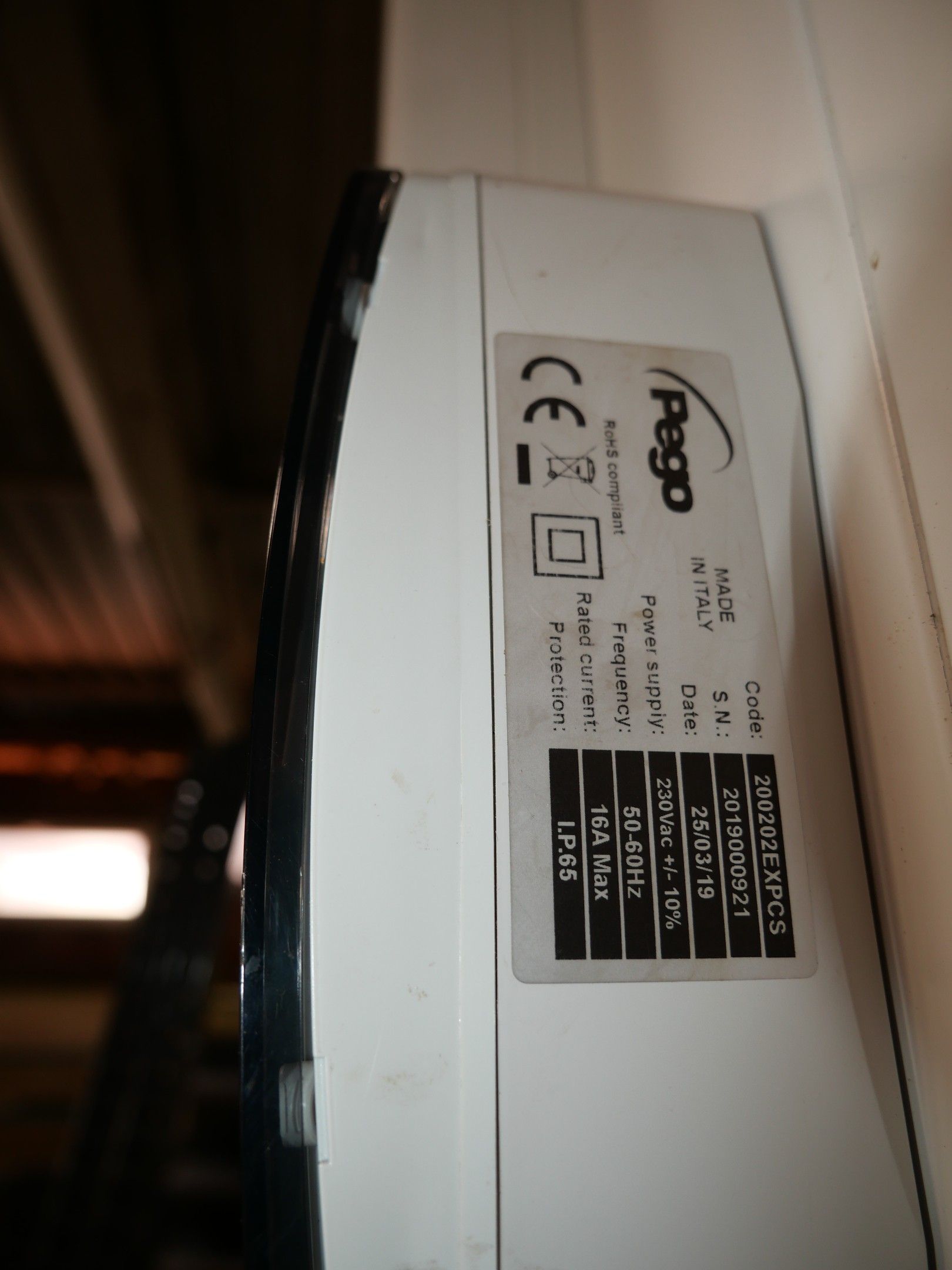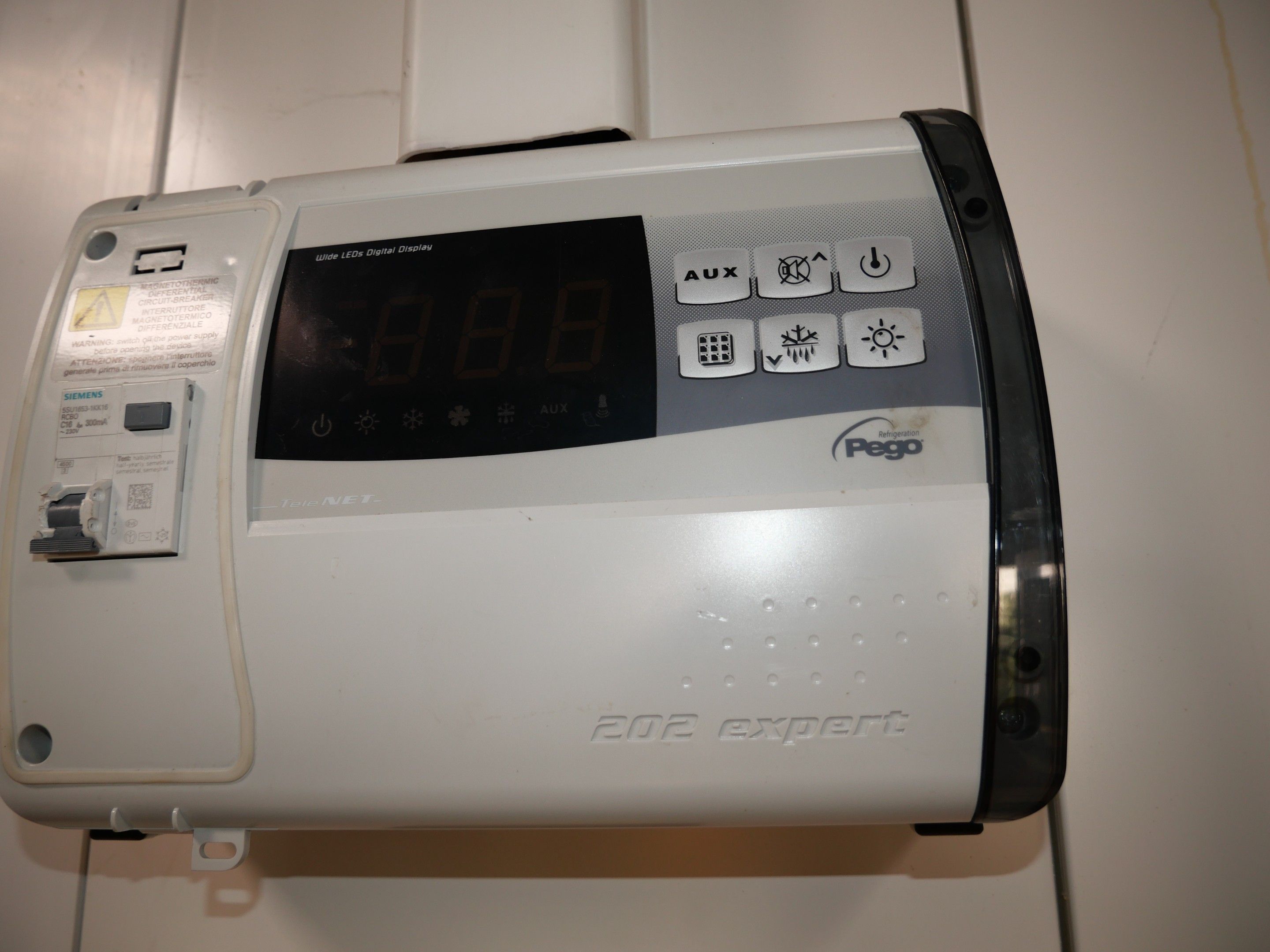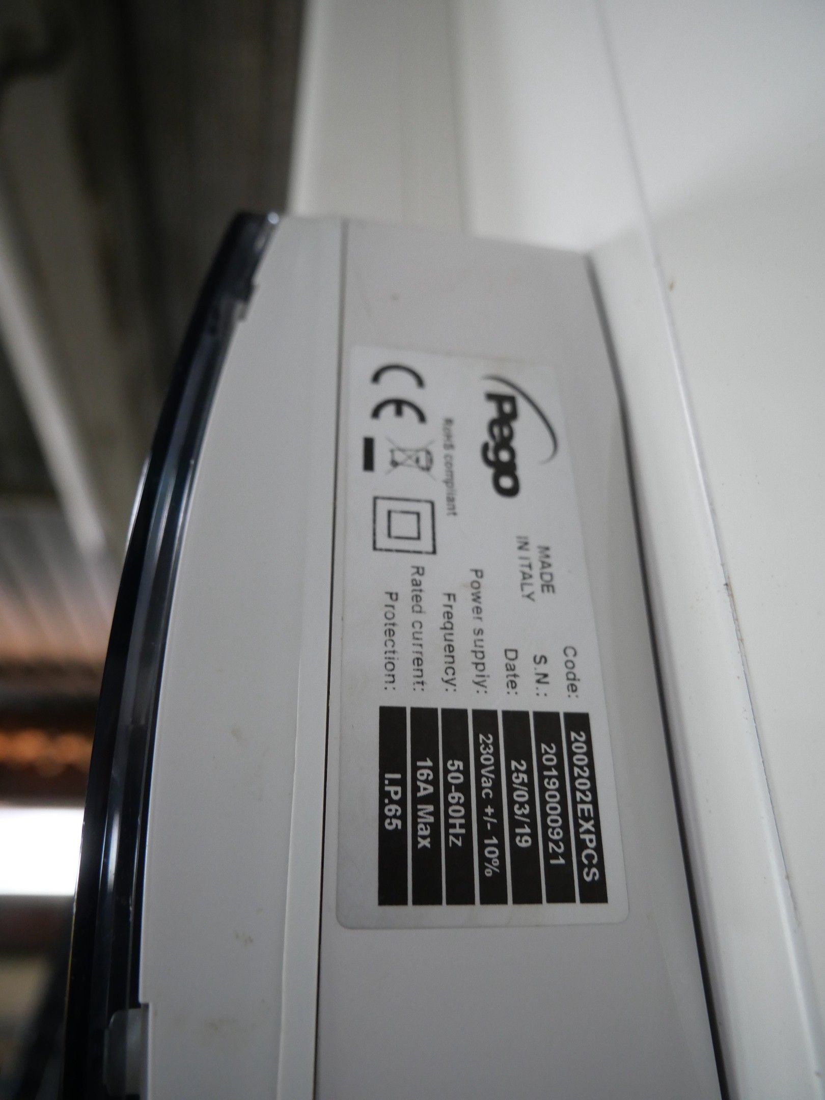 A Pego positive cold room, approx. 2 m x 2.5 m with 2 bays of metal and resin shelves, to be dismantled in compliance with safety standards. The buyer is responsible for providing the necessary equipment for removal.