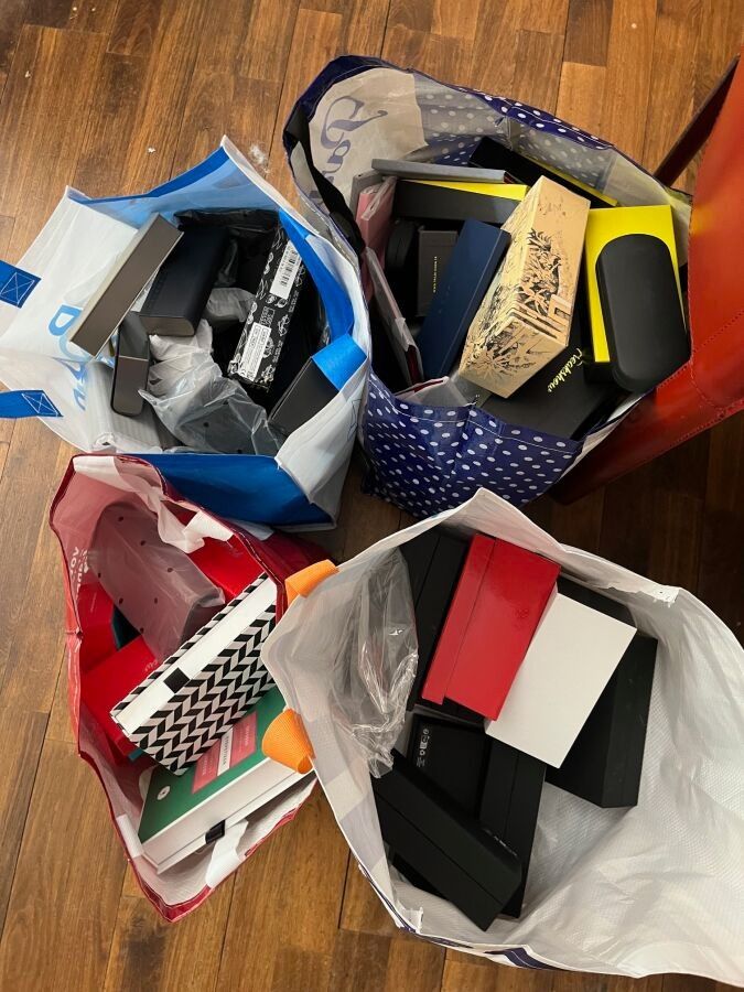 Stock of frames (LUNOR, NATHALIE BLANC, CLYDE, TOM FORD, LINDBERG, MAUI JIM, GUESS, KAPORAL, etc.) including around 370 mixed and children's optical and sunglasses frames.