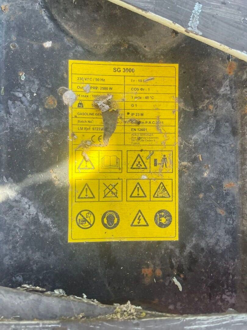 - Small Stanley generator model SG 3000, sold as is with no claims,