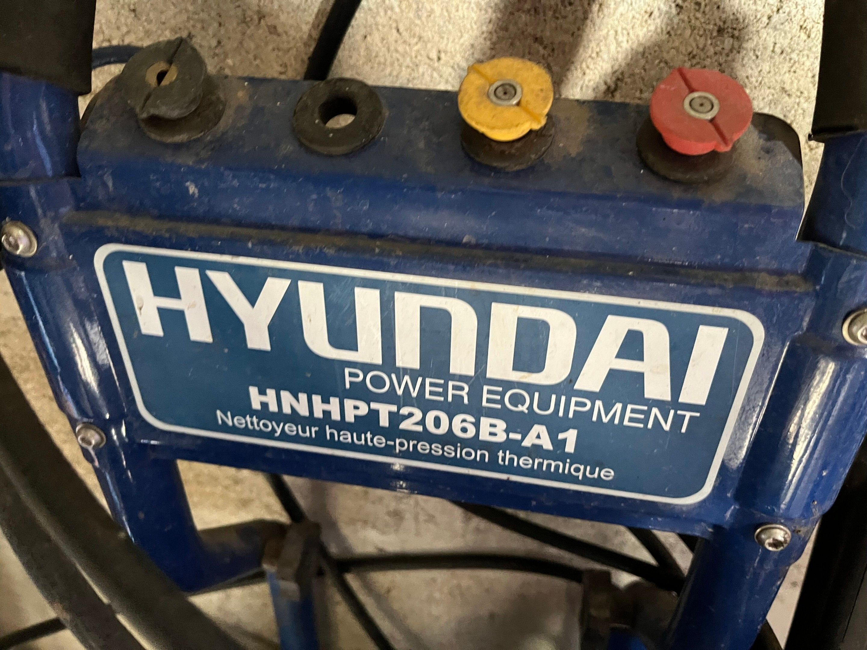 - Hyundai high pressure cleaner model HNHPT206B-A1, sold as is with no claims,