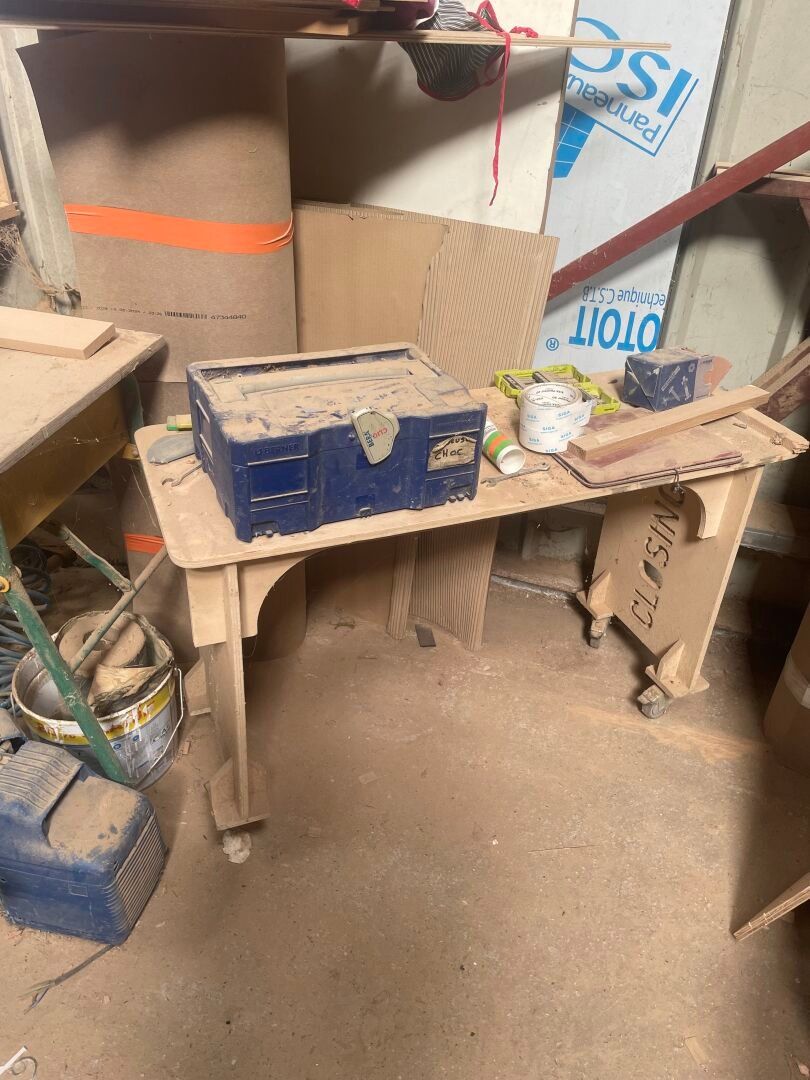 - Lot including Macc Workbench, Macc Tripod Roller Servant, Small Servant on castors, in wood, hand-crafted, all sold as is with no claims,