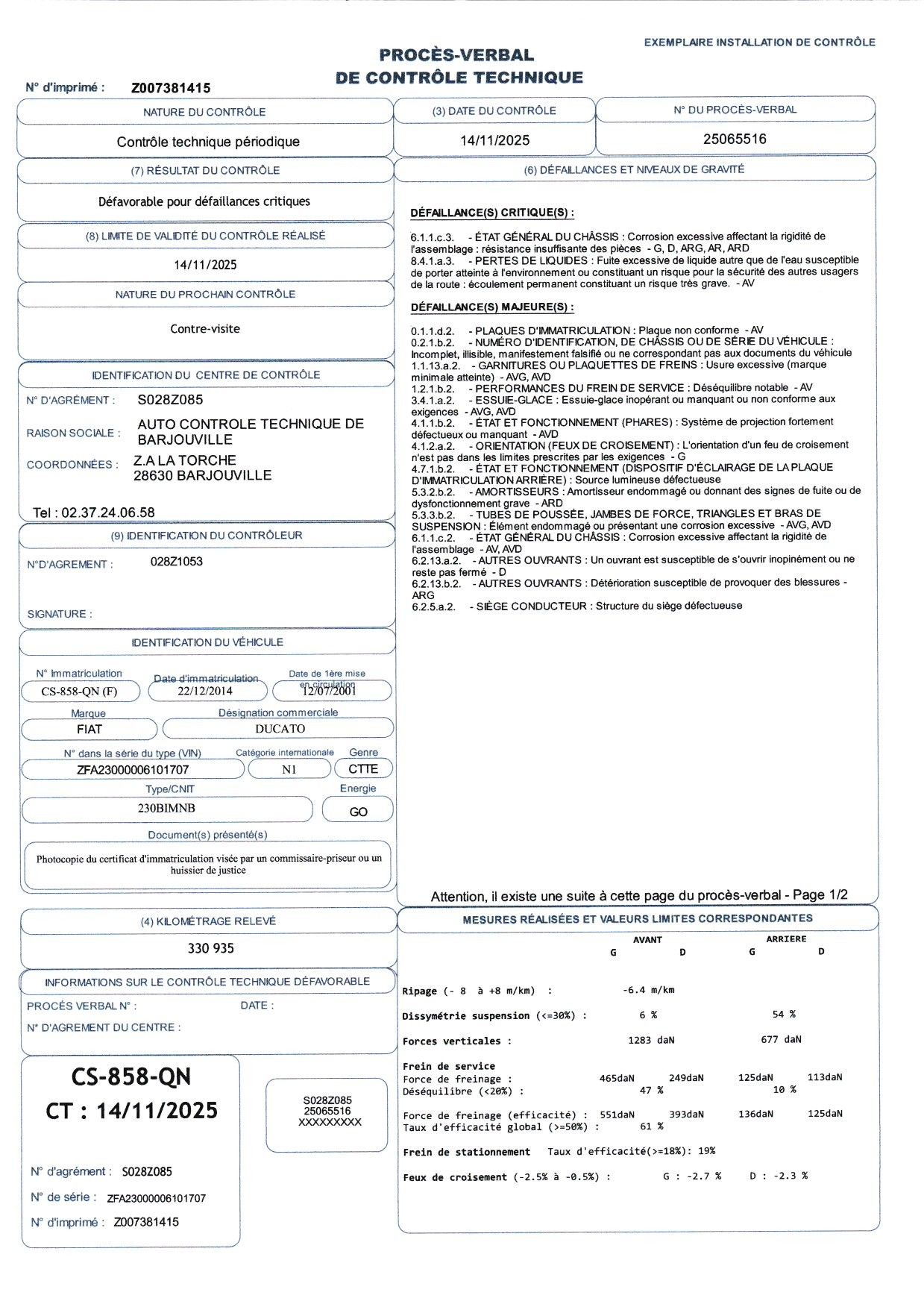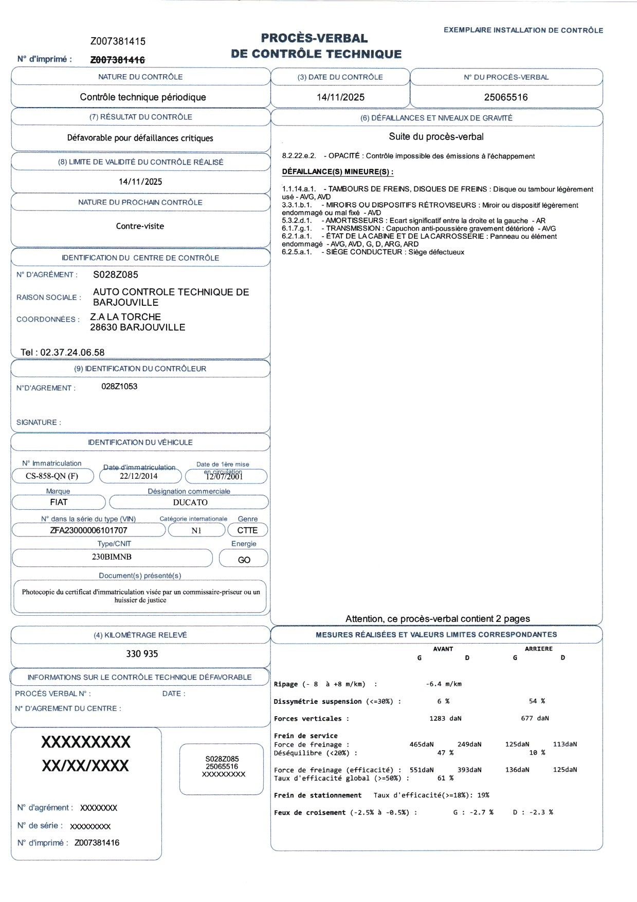 FIAT DUCATO - Type: CTTE - Body: FOURGON - Energy: GO - Mileage: 330935 - 1ere M.E.C: 12/07/2001 - Power: 9 - Tva récupérable - Seats: 3 Observations: Sold as is with no complaints, with technical inspection with critical faults and major faults. Exhibition on Monday 17.11 between 14 h and 16 h at Hôtel des Ventes 10 rue Claude Bernard 28630 Le Coudray. Collection by appointment before 25.11.25