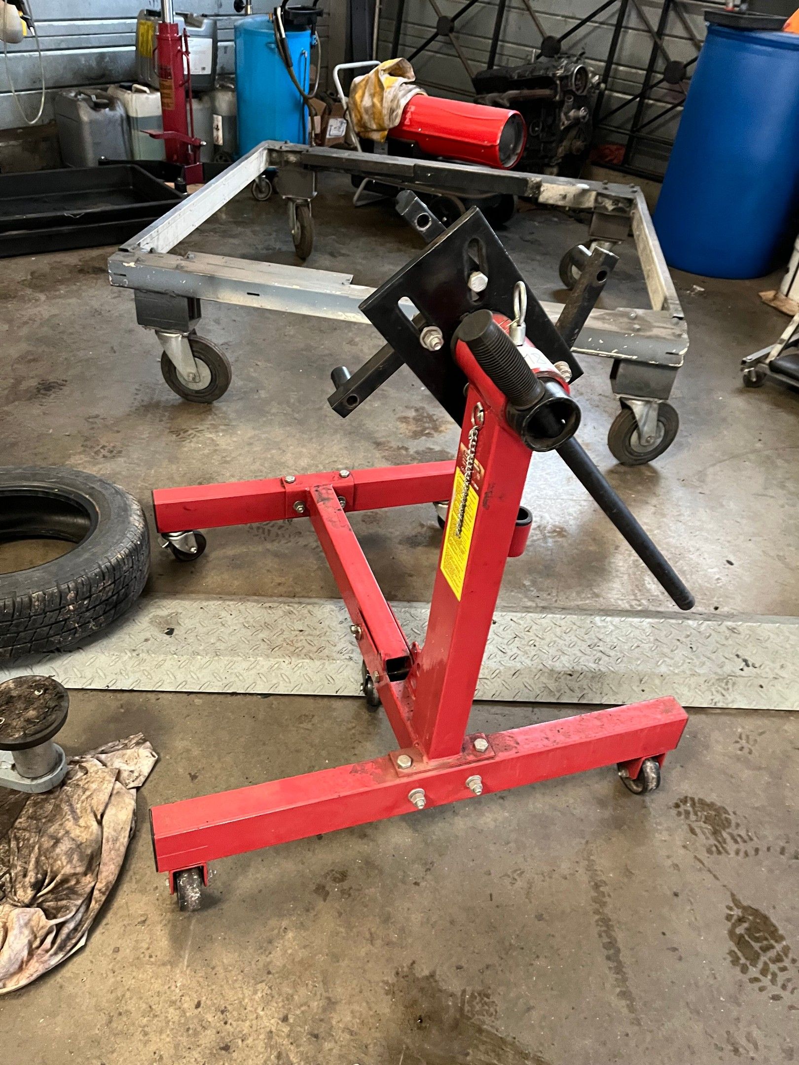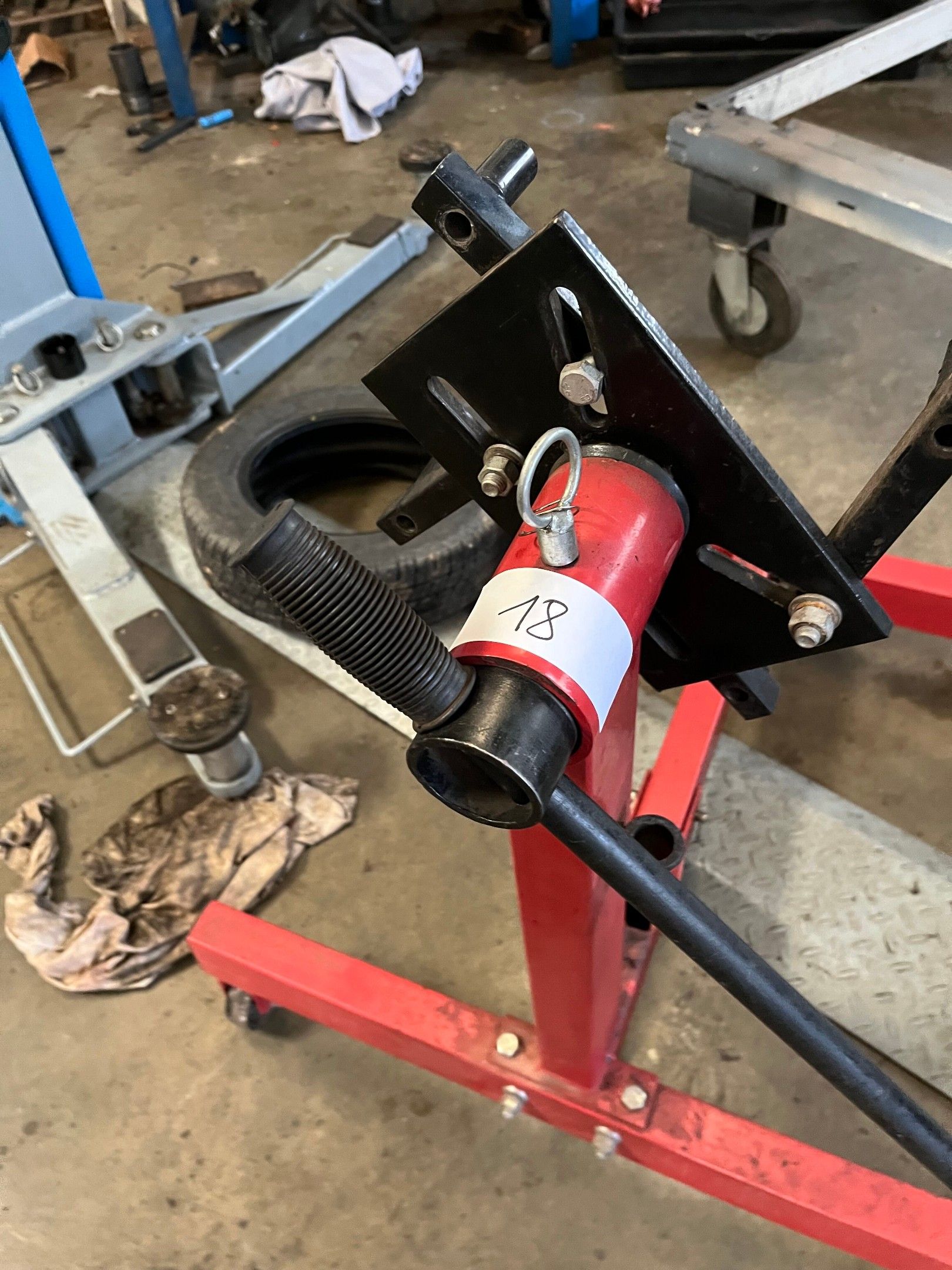 - Engine mount, red metal, in unclaimed condition,