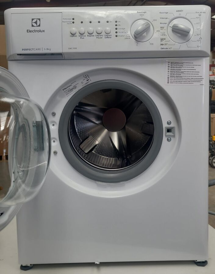 9640-442 / Compact porthole washing machine 3 kg - ELECTROLUX - Model EWC1052 - Capacity 3 kg - Spin speed up to 1000 rpm - Energy class D - Programmes cotton, eco 40-60°C, delicates, wool, mix, wool cold, mini 30, delay start - Package size: 49.5 × 67 × 51.5 cm /// SECOND-HAND PRODUCT