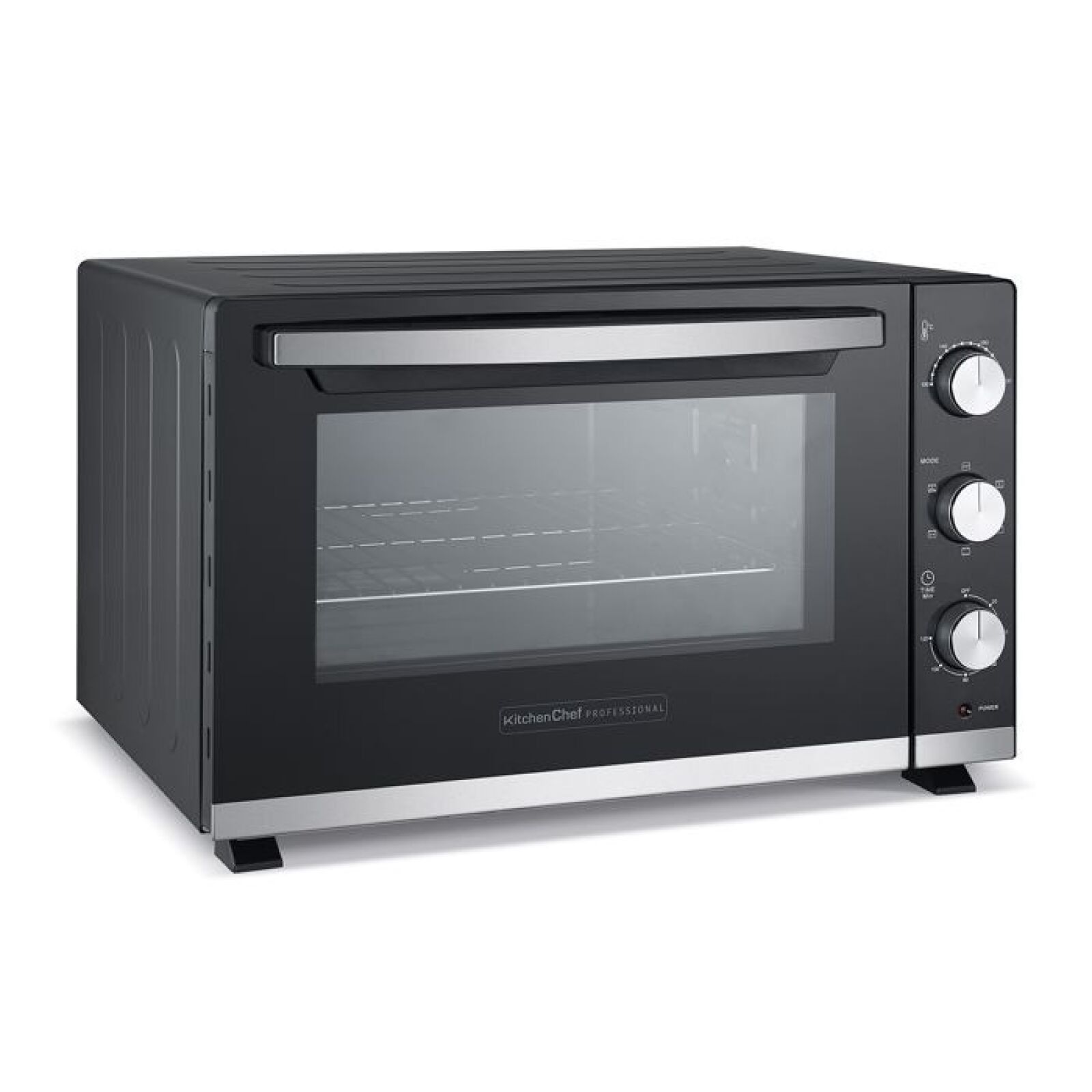 9245-256 / Kitchen Chef - 46-litre capacity multifunction fan assisted oven - KC-FOUR46 - Adjustable thermostat up to 230°C and rotisserie function - Power: 1800 W - 5 cooking positions - Fan assisted convection, grill and metal basket for cooking chips - Dimensions of package: 65.5 x 48 x 44.5 cm /// LIKE NEW - DEFAULT/DAMAGE: BEFORE SLIDING A LITTLE BUT IMPROVES DOOR CLOSING