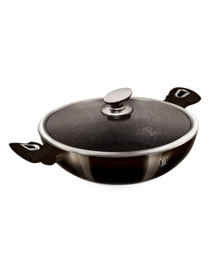 8289-517 / Wok with lid - BERLINGER HAUS Collection Shiny Black - 2 side handles - Thick-walled forged aluminium body material - 3-layer non-stick marble coating - Suitable for all types of hobs, including induction hobs - PFOA, LEAD, cadmium free /// AS NEW