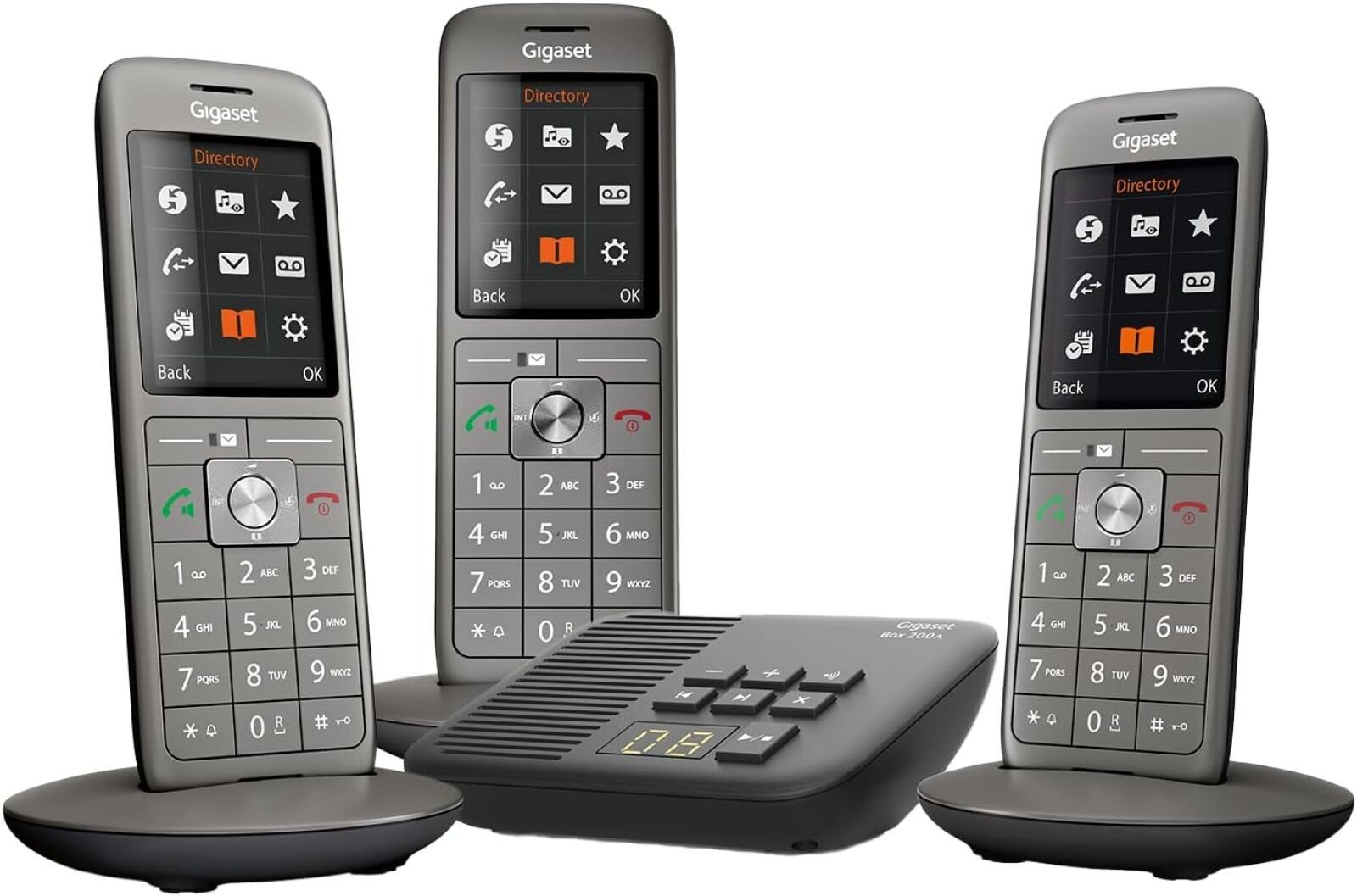 9245-198 / Cordless Phone - Gigaset CL660A Trio - 2,4" Display - Answering Machine - 3 Handsets - Material: Acrylonitrile butadiene styrene (ABS) - Grey Anthracite - Battery Quantity: 2 AAA required (NOT Included) - Compatible Units: Gigaset Box /// LIGHT USAGE TRACES - ABIME PACKAGING