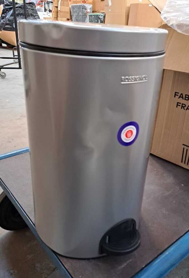 8798-455 / Pedal bin - ROSSIGNOL - Sania 90091 - 20 L - Colour: metal grey - Product : 40 x 29 x 46 cm - 2.6 kg /// LIKE NEW WITH DEFAULT: SHOCKS ON FRONT FACE + ON LID - DAMAGED PACKAGING