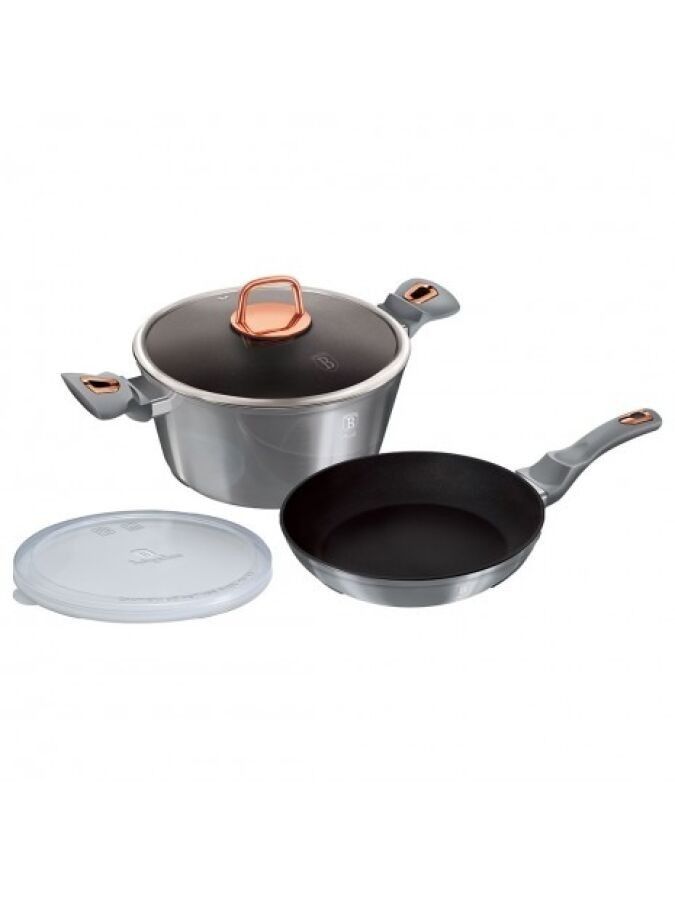 8289-503 / Cookware - BERLINGER HAUS - Moonlight Collection BH-6070 - 4 pcs - Thick-walled forged aluminium body material - 3-layer non-stick marble coating - Frying pan: 24X4,8 cm 1,7L - Saucepan with lid: 24X11,8 cm 4,1L - All burners including induction - PFOA, LEAD, cadmium free /// LIKE NEW