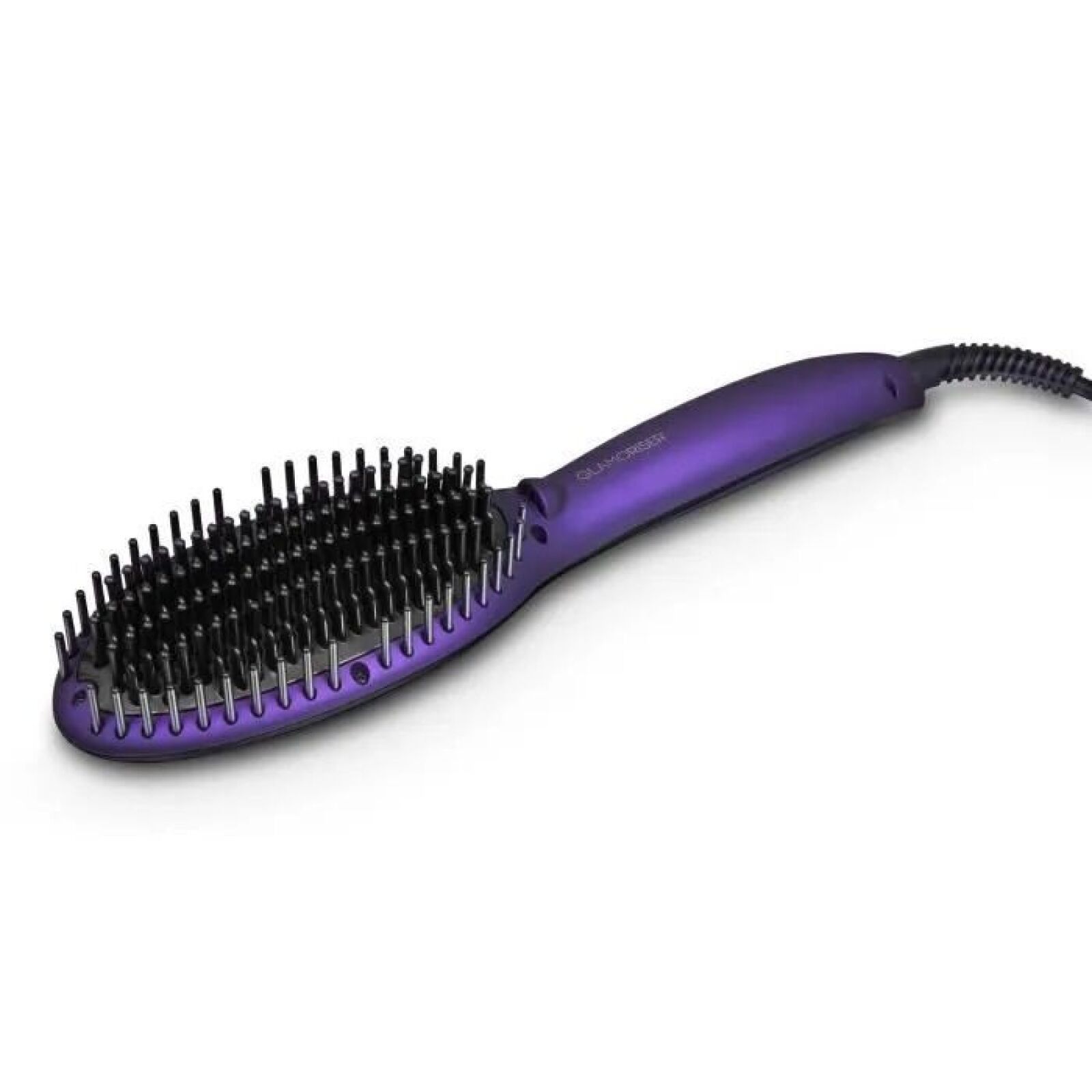 4678-1306 / Heated smoothing brush - GLAMORISER - Model GLA030 - Black diamond oil-infused pimple technology - Adjustable temperature from 160 °C to 210 °C - LCD display - 3 m swivel cord - UK/EU multi-voltage adapter - Heat-resistant travel pouch /// AS NEW
