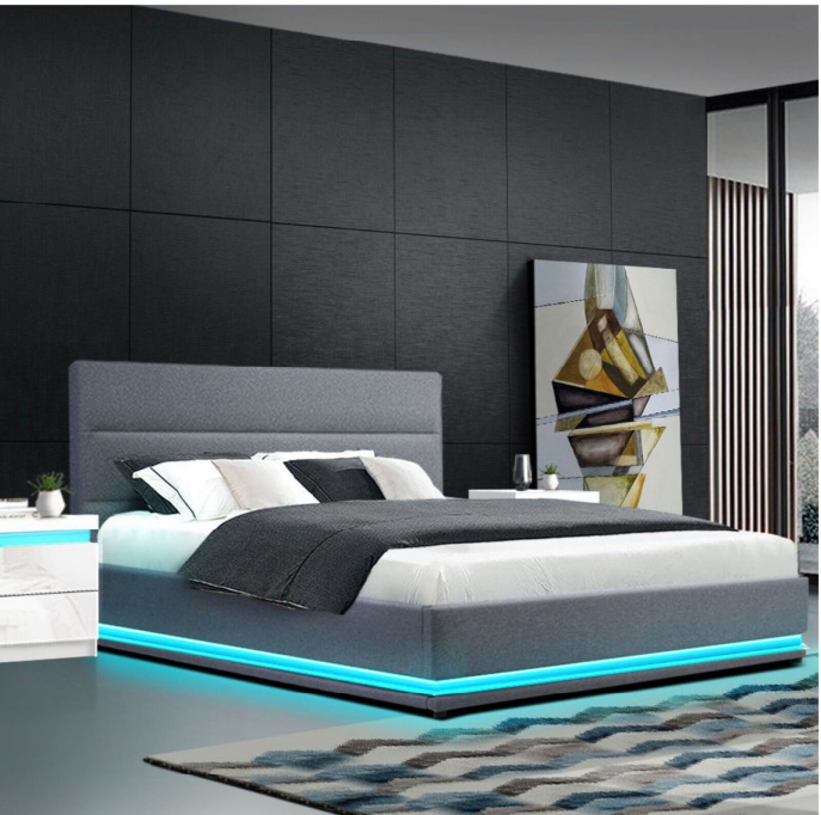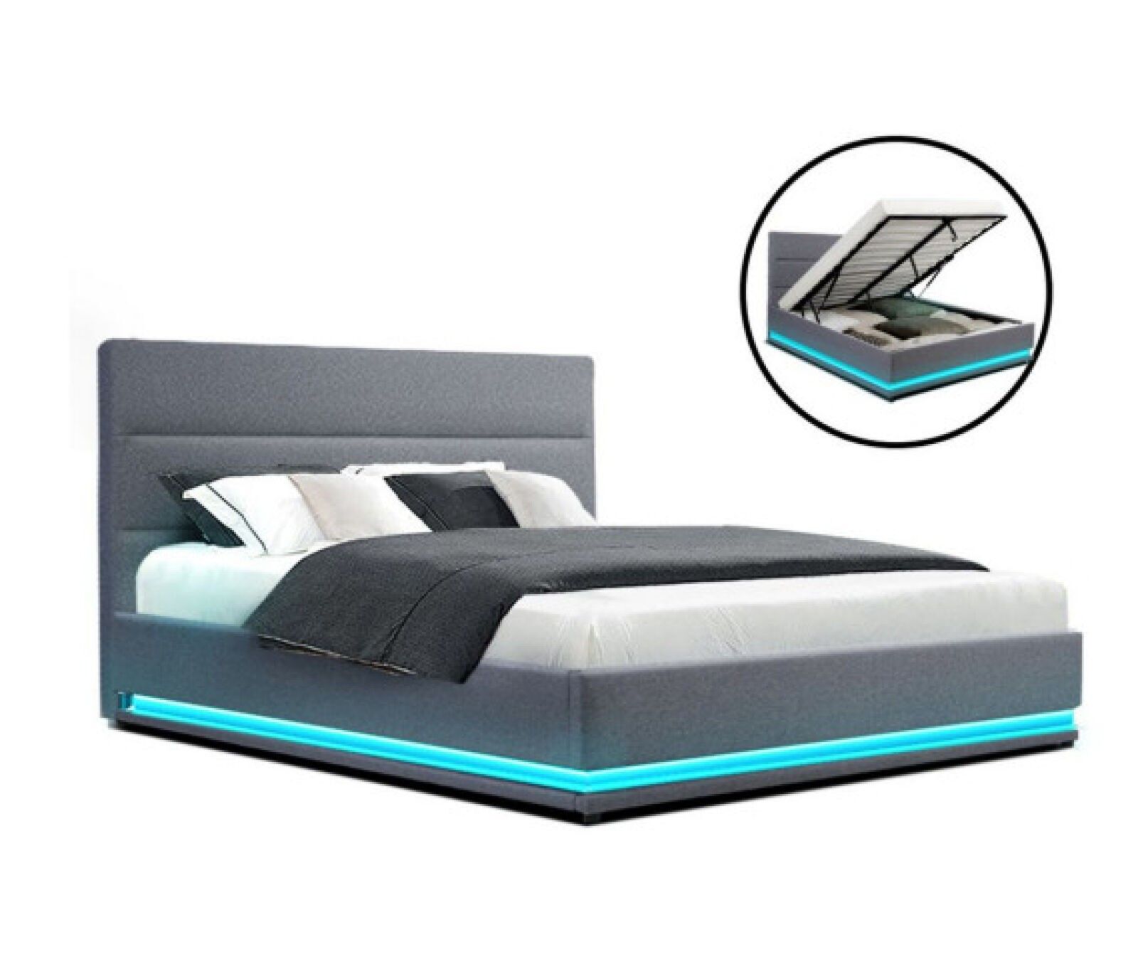 Sturdy and hard-wearing, this bed frame means you won't have to search for a light switch in the middle of the night. It comes with integrated LED lighting that can be customised in 16 different colours and 4 flashing modes to suit your preferences. Not only will the illuminated bed frame create a beautiful ambience, it will also save you the trouble of buying extra bedside lamps or nightlights. dimension:L 204 x W 154 x H 98 cm. Headboard height: 98 cm, Storage height: 33 cm