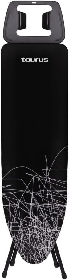 9245-234 / Ironing board - TAURUS - ARGENTA BLACK-1 - Ironing surface: 110 x 32 cm - 3 position height adjustment up to 81 cm - 100% cotton cover with breathable foam - Sturdy metal mesh structure - Non-slip feet for optimum stability - Compact folding design - Suitable for steam centrals - Colour: black Dimensions: 15 x 138 x 10 cm Weight: 4.45 kg /// LIKE NEW - TORDU