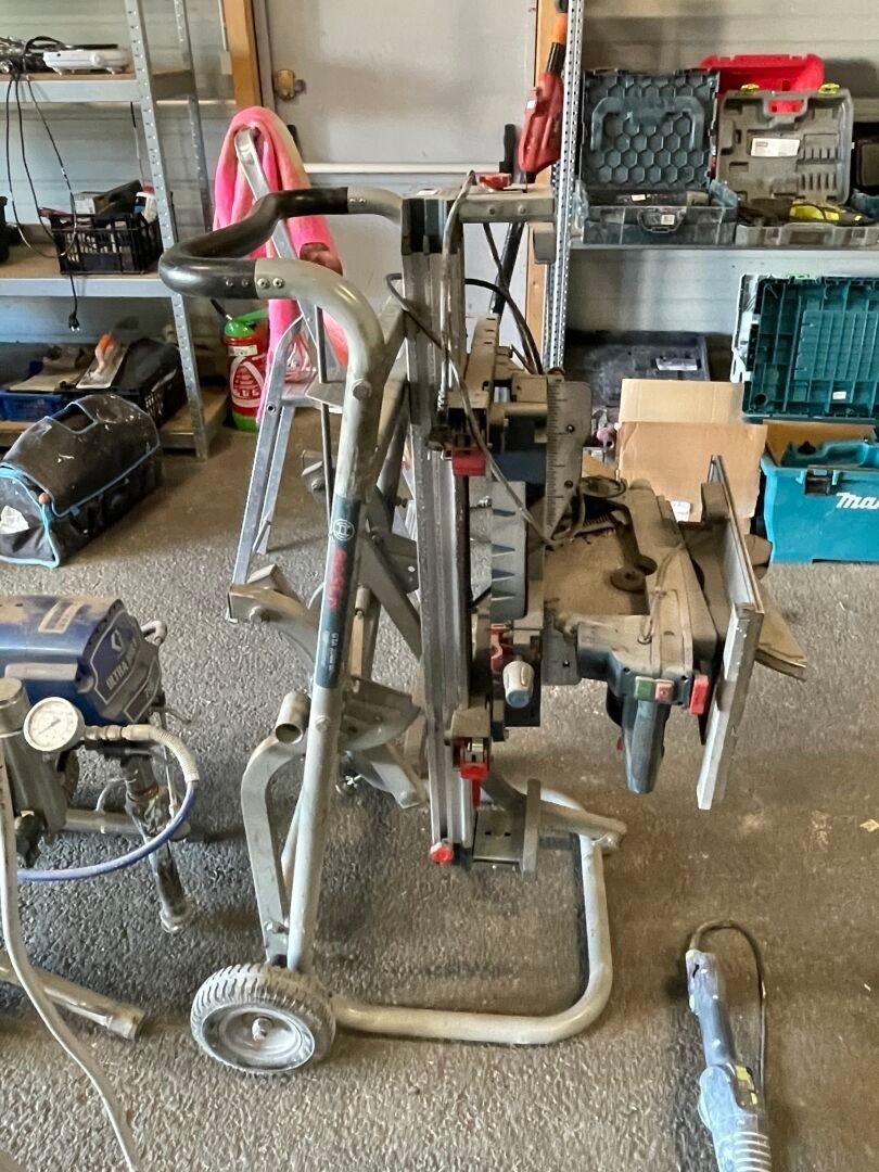 1 BOSCH GTA2500W pendulum circular saw on rolling stand