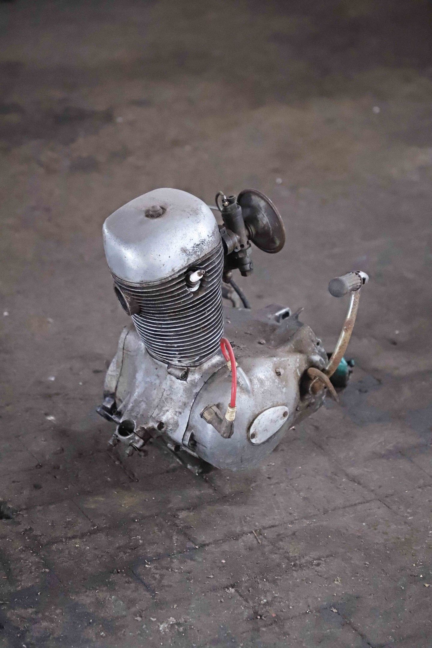 c. 1950 - Motoconfort C45S Motorbike sold without registration title No registration title Sold without roadworthiness test Sold without contrôle technique Lot sold by designation, to be collected after the sale by appointment in Doubs (25) Lot sold by designation, to be collected after the sale by appointment in Doubs (25) Frame n° 595614 The tough and economical popular 125 from the 1940s/1950s. The tough and economical 125cc popular model of the 1940s and 1950s. - This bike was distributed by both Motobécane and Motoconfort under two different names (D45 - C45) and was a huge success in its day. - Its main advantage was its low fuel consumption. This small 125 cm3 engine consumed less than 3 litres per 100 kilometres thanks to its highly economical 4-stroke single-cylinder engine with side valves. - Although it had three hand-operated gears, it also had a clutch pedal, allowing young drivers to change gear with their left hand. - In 1949, the new D45S and C45S were fitted with sliding rear suspension and telescopic forks. - The model illustrated here is partly dismantled and has lost its wheels and a few other components over the years. It needs to be completed and restored. A 175cc engine is included. - This motorbike, distributed by both Motobécane and Motoconfort under two different names (D45 - C45), enjoyed tremendous success in its time. - It particularly stood out for its low fuel consumption. This small 125 cc engine used less than 3 liters per 100 kilometers, thanks to its very economical 4-stroke side-valve single-cylinder engine. - Although its three gears were hand-operated, it was equipped with a clutch pedal, allowing young riders to change gears with their left hand. - In 1949, the new D45S and C45S models received a sliding rear suspension and then a telescopic fork. - The example shown here, partially dismantled, has lost its wheels and a few other components over the years. It will need to be completed and restored. A 175 cc engine is included. Est. 300 - 600 € Without reserve