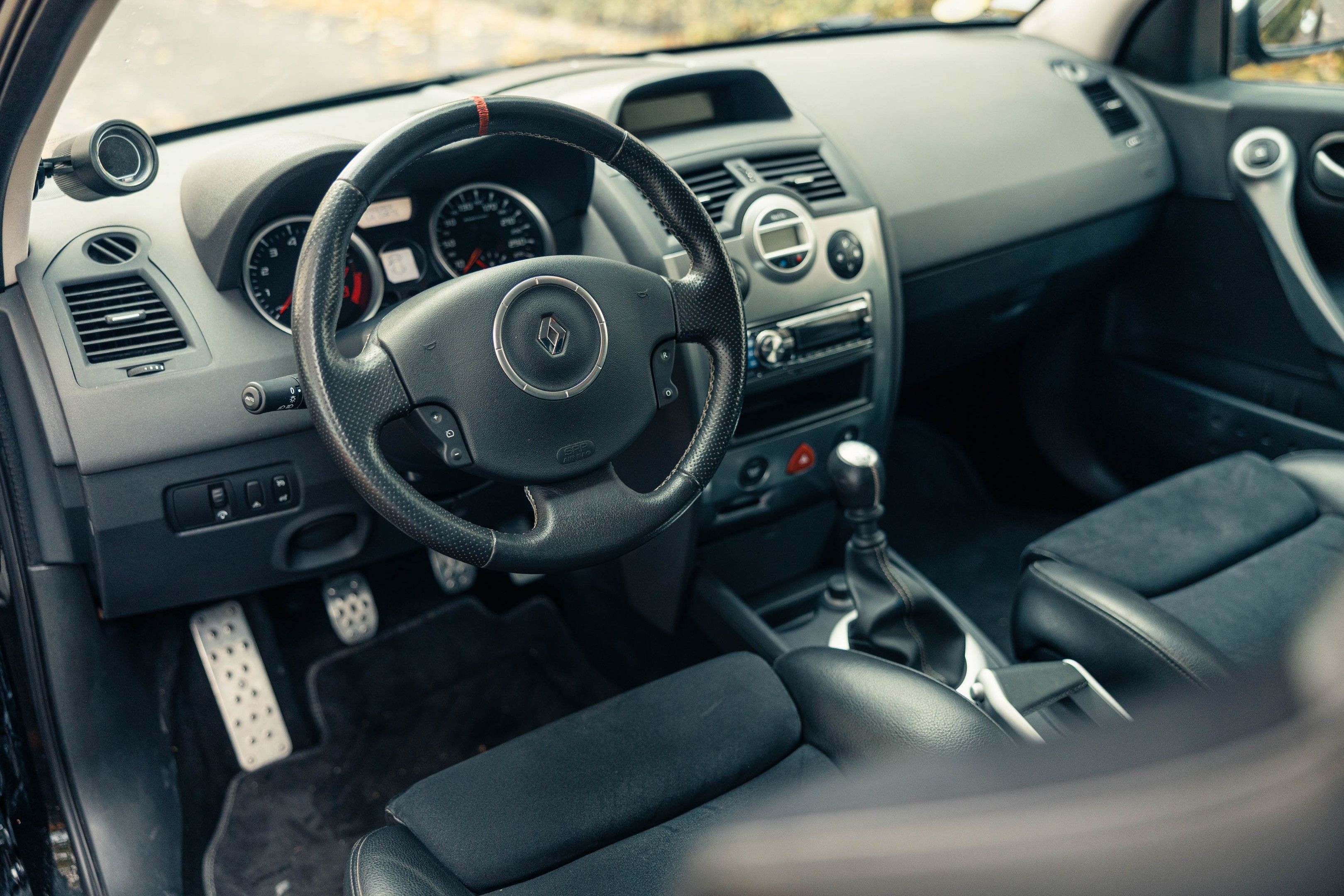 - The Megane RS F1 Team celebrates Alonso's world titles with Renault in 2005 and 2006. Its 230 hp 2.0 turbo engine is accompanied by a Torsen differential, Cup chassis and red Brembo brake calipers visible behind the 18-inch anthracite BeBop rims. Only 3,800 units of this numbered series, based on the already legendary R26, will be produced!