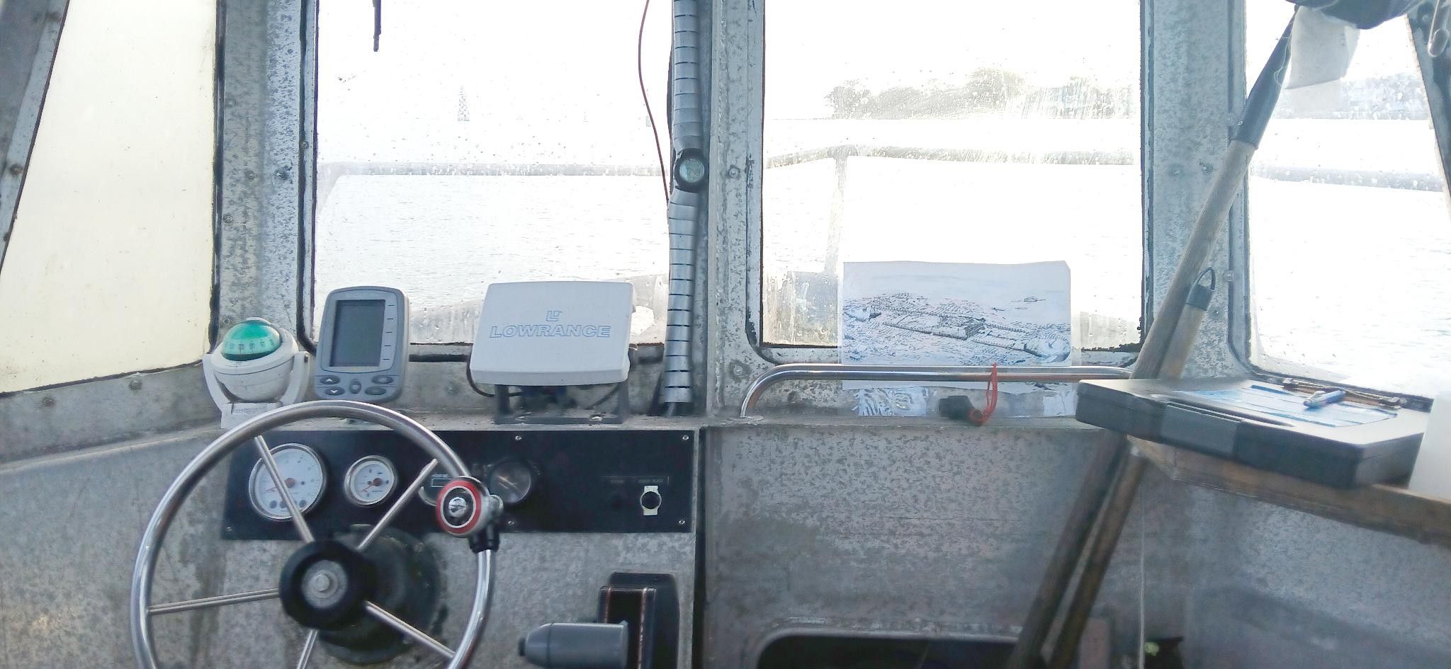 Wheelhouse (bench and storage-capacity 3 people) - Colour depth sounder, GPS (cartography Brittany, Finistère, Morbihan), VHF, hydraulic tiller, electric windlass with remote control, on deck: symmetrical benches with 2x8 bottle rack, rear launching platform and platform equipped with diving ladder...