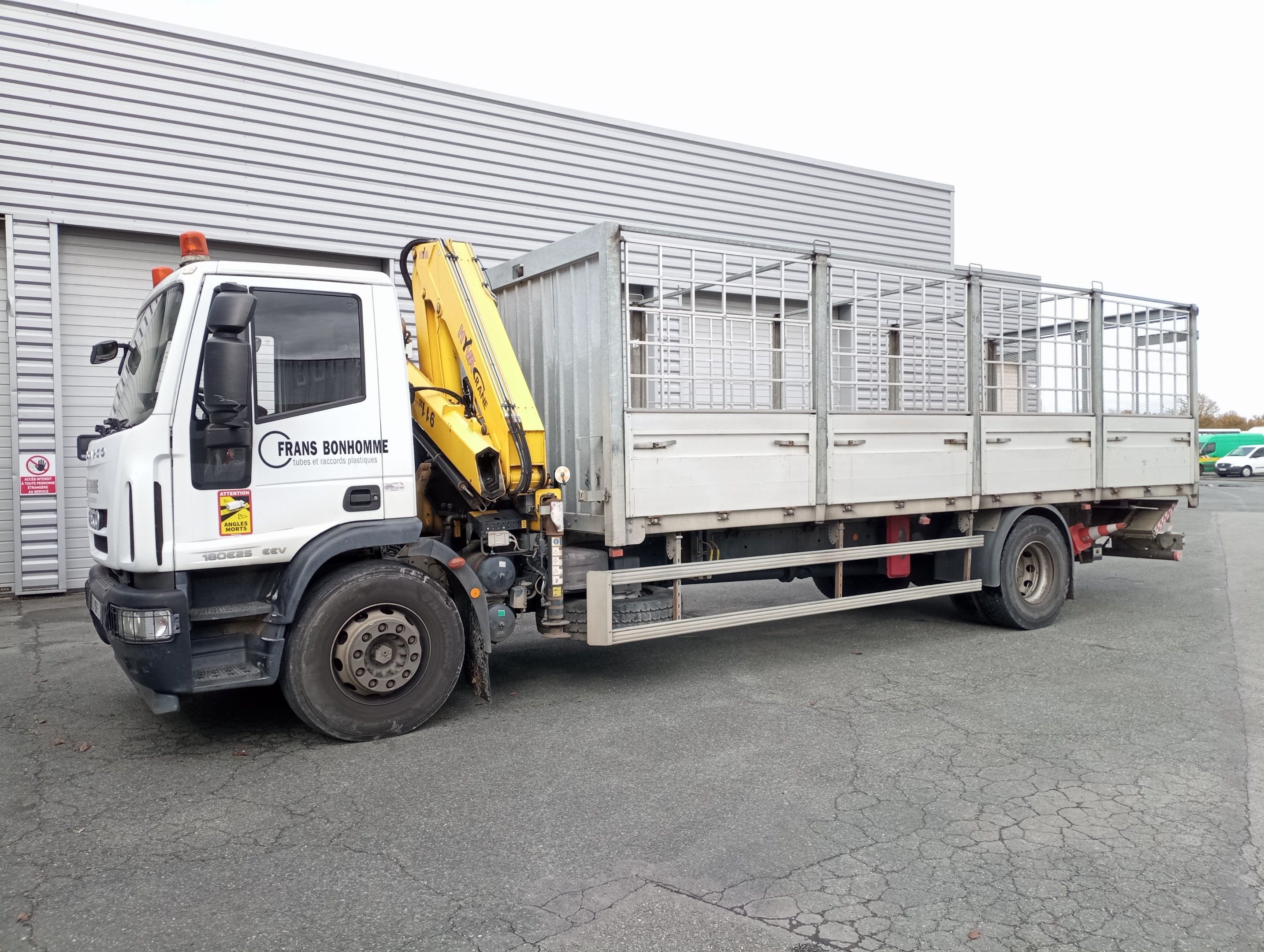 TRATEAU GRUE IVECO EUROCARGO ML180E254X2 RIDELLES/REHAUSSE équipé GRUE HYVA 911-35
