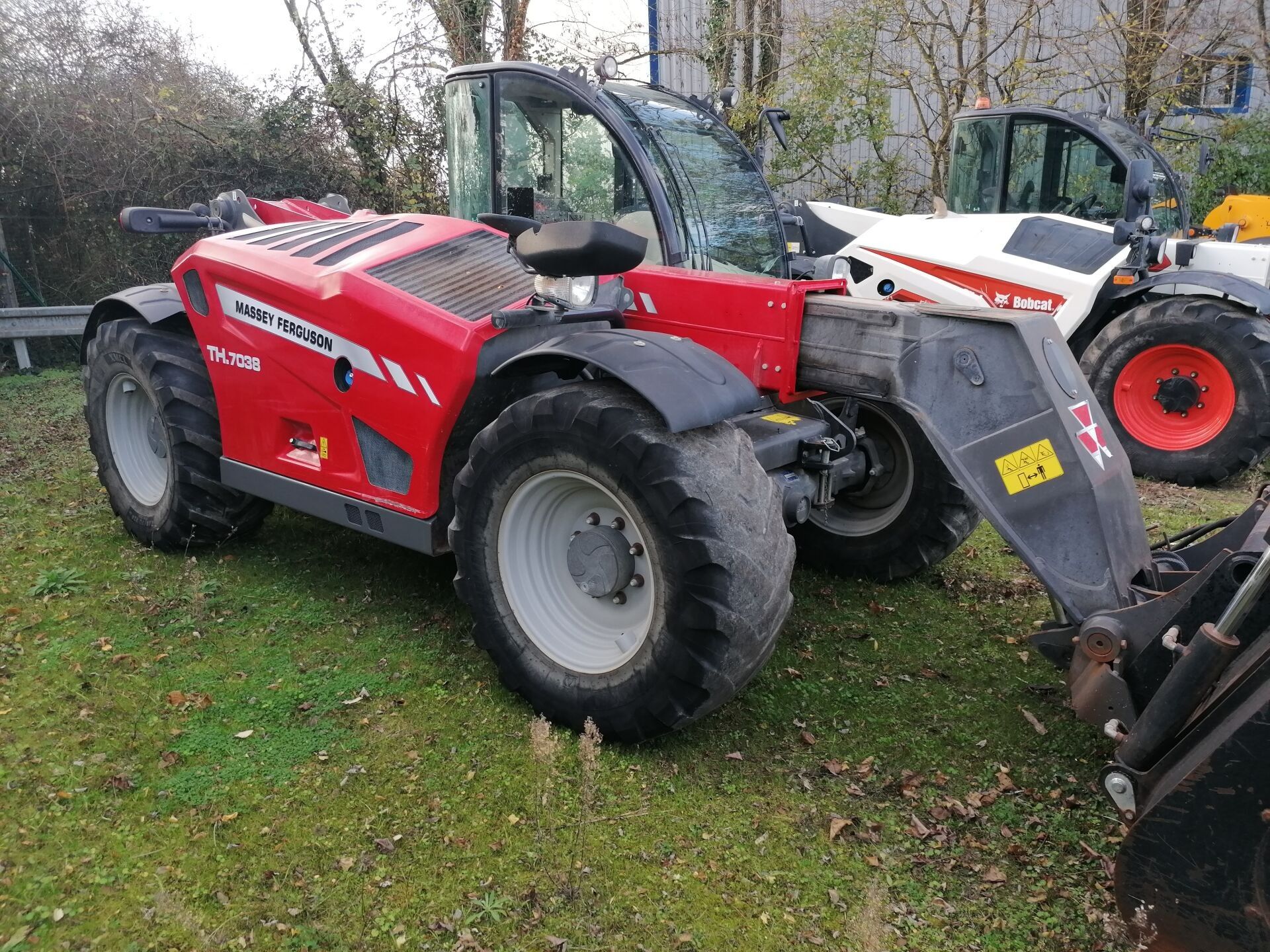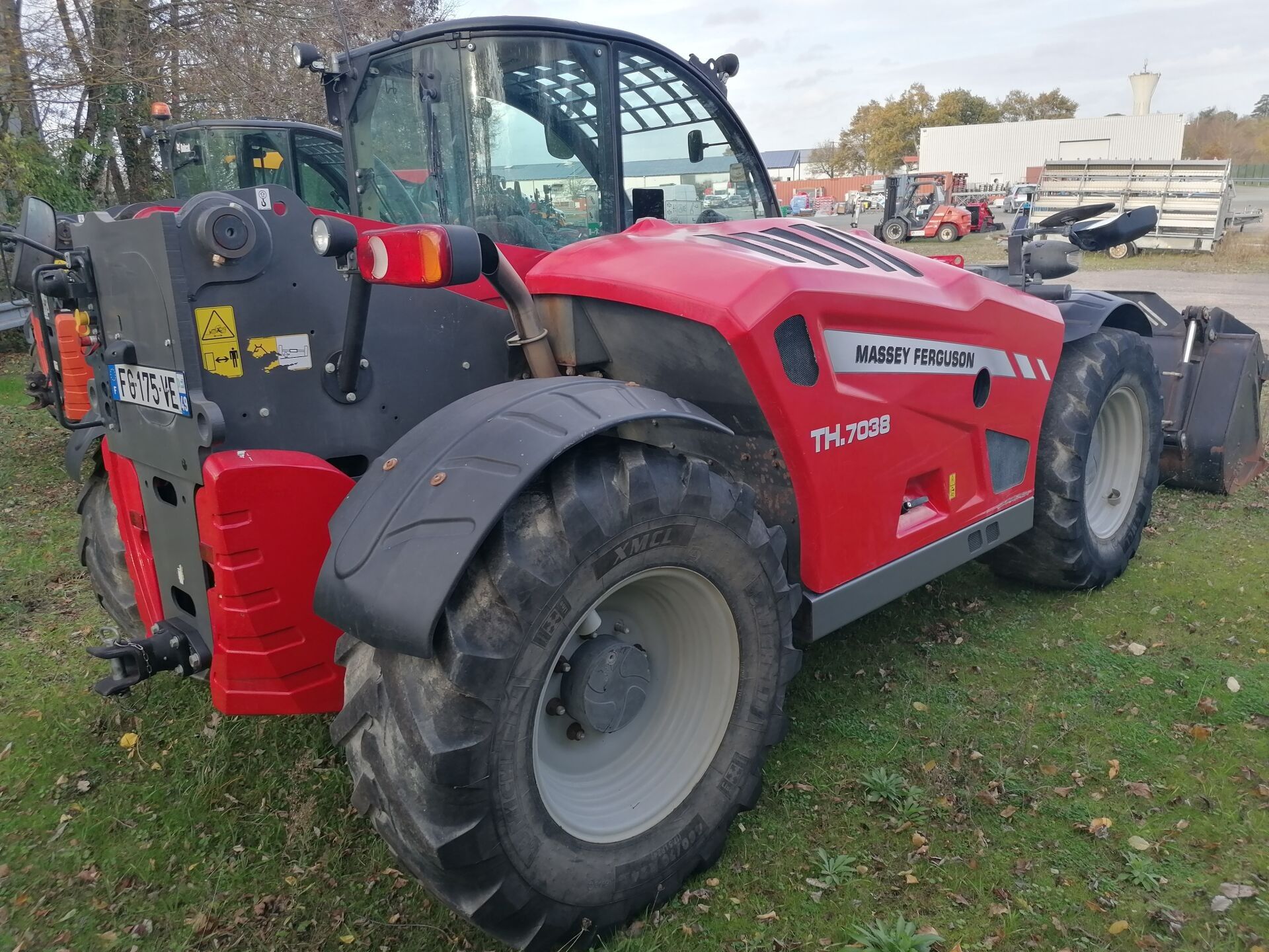 MASSEY FERGUSON TELESCOPIC MASSEY FERGUSON TH 7038 - Type: TRA - Body: AGRICULTURAL - Energy: Go - Color: RED - 1st M.E.C : 07/06/2019 - Puissance : 14 - Tva récupérable - Type mines : T10MFGTA009H664 - Places : 1 - 5 140 heures-BMS-transmission hydrostatique 40km/h-Inverseur sens de flux-gamme 2 vitesses-3 modes de roues directrice-chape AR-suspension de fleche-Vendu HT - Equipements : CLIM