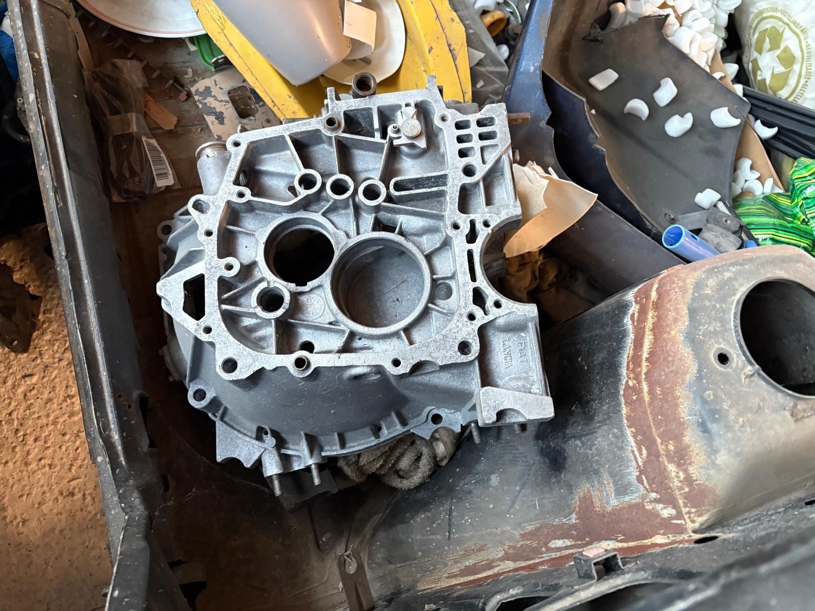 Many various spare parts (engine block parts, alternator, dismantled gearbox, etc).