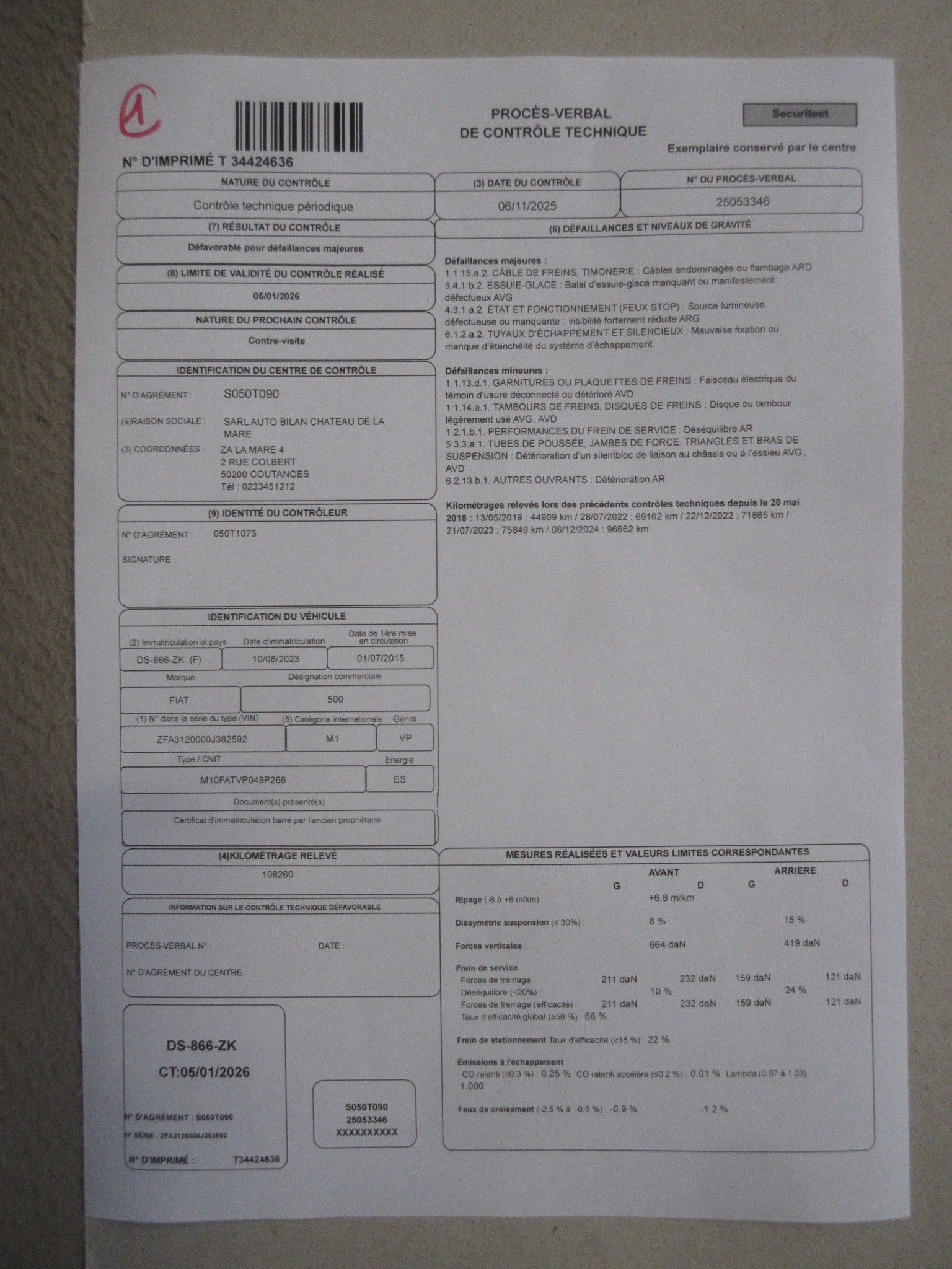 Technical inspection on 06/11/2025: 4 major defects to be corrected