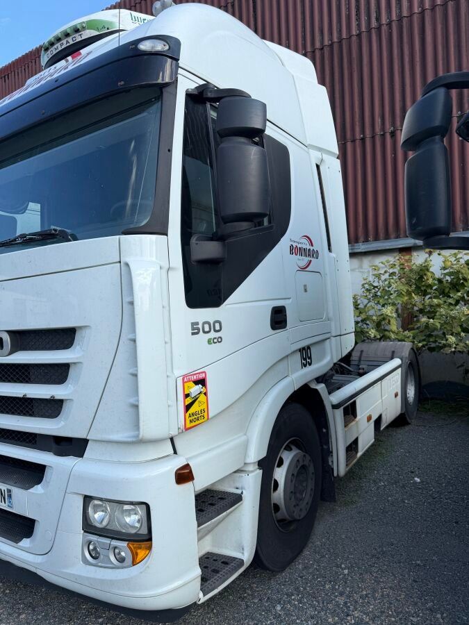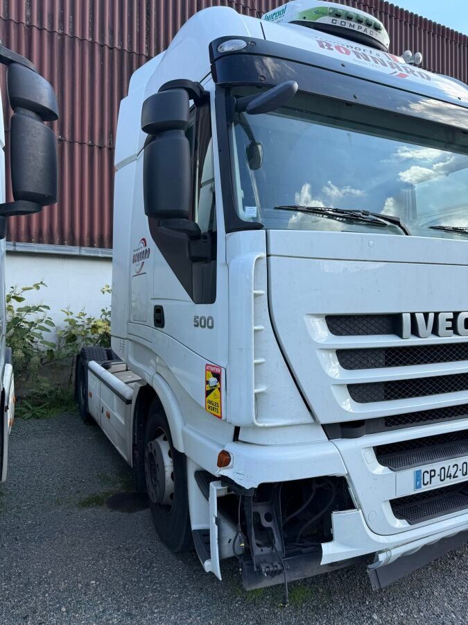 IVECO 440S50 - EN PANNE - Type : TRR - Body : PR SREM - Energy : GO - Colour : BLANC - Mileage : 936588 AU 13/11/2024- 1ere M.E.C : 09/01/2013 - Power : 34 - Tva récupérable - Type mines : SM1V5042A - Places : 2 - Length : 0 - Width : 0 - Height : 0 - 500 eco- manque un phare + CHOC - carnet d'entretien - barré rouge - carte grise - date de validité du contrôle technique 12/11/2025